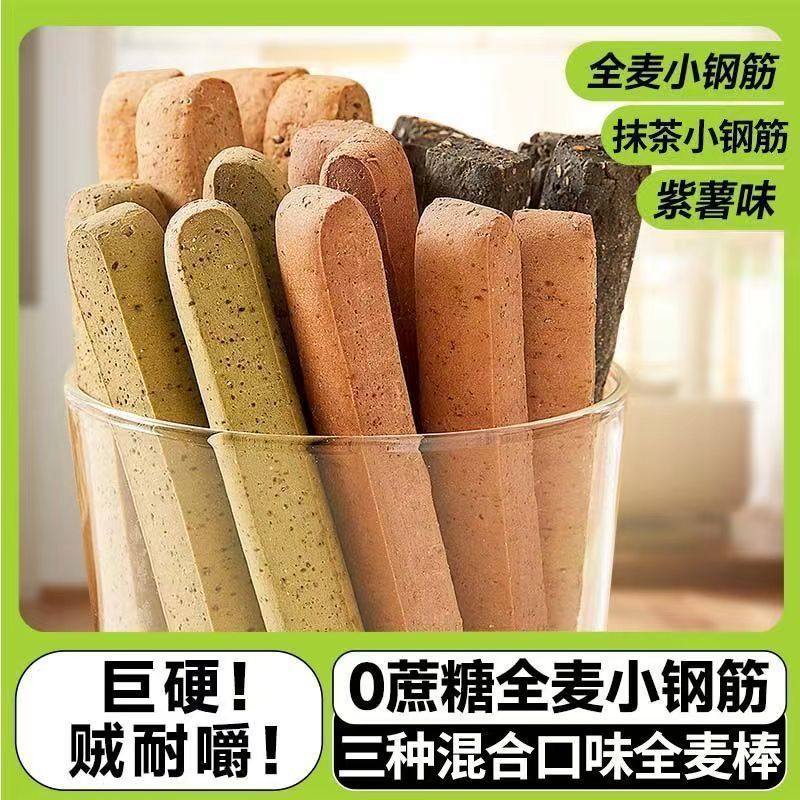 📚 小钢筋全麦棒代餐饼干饱腹巨硬磨牙棒耐嚼卡零食品混合口味无蔗糖