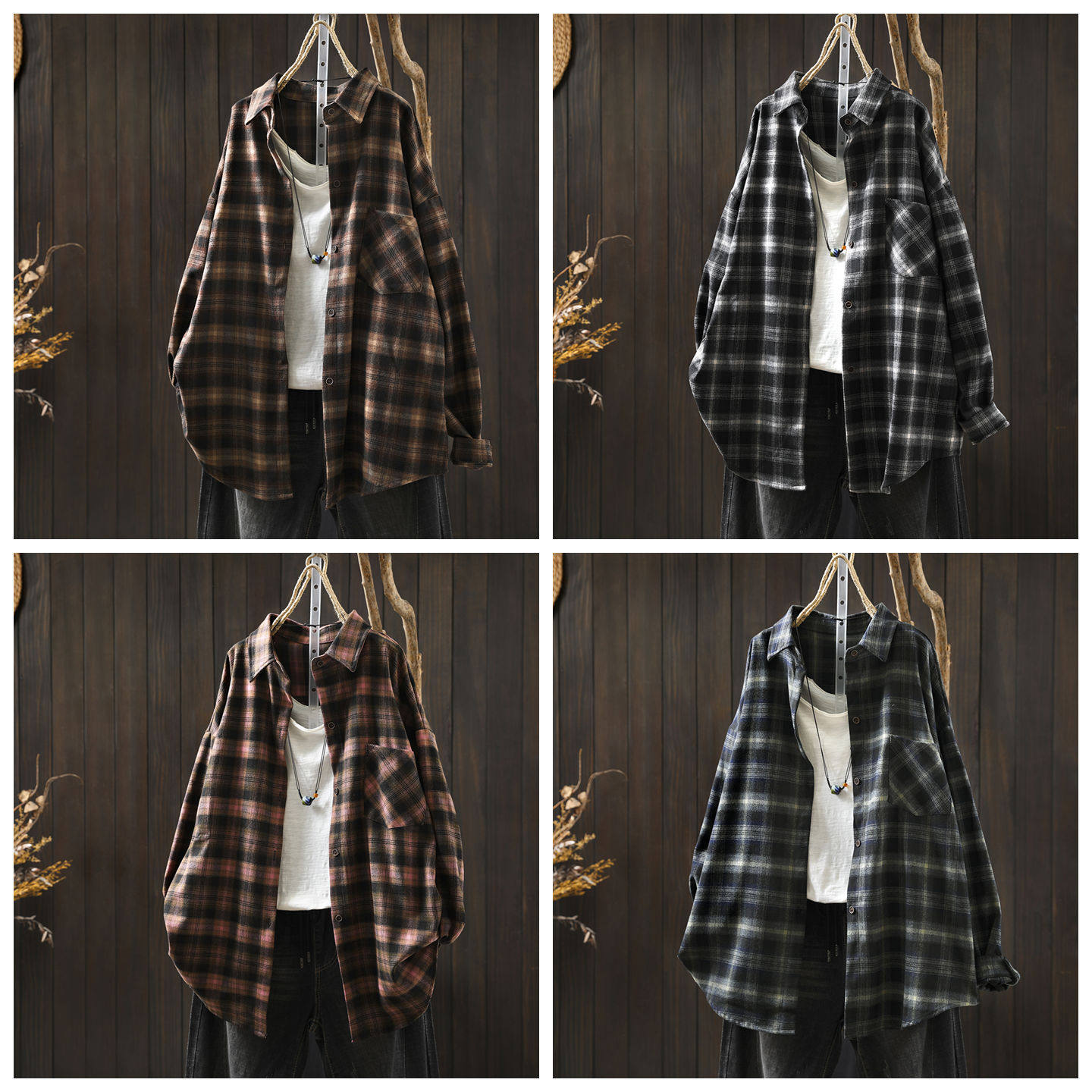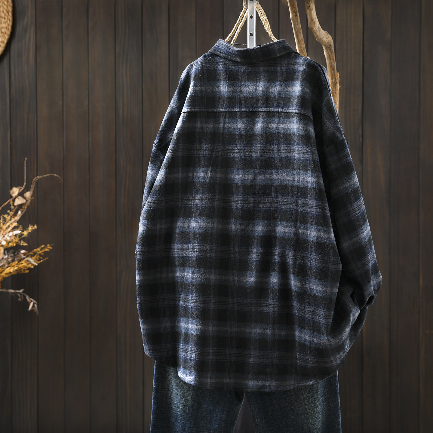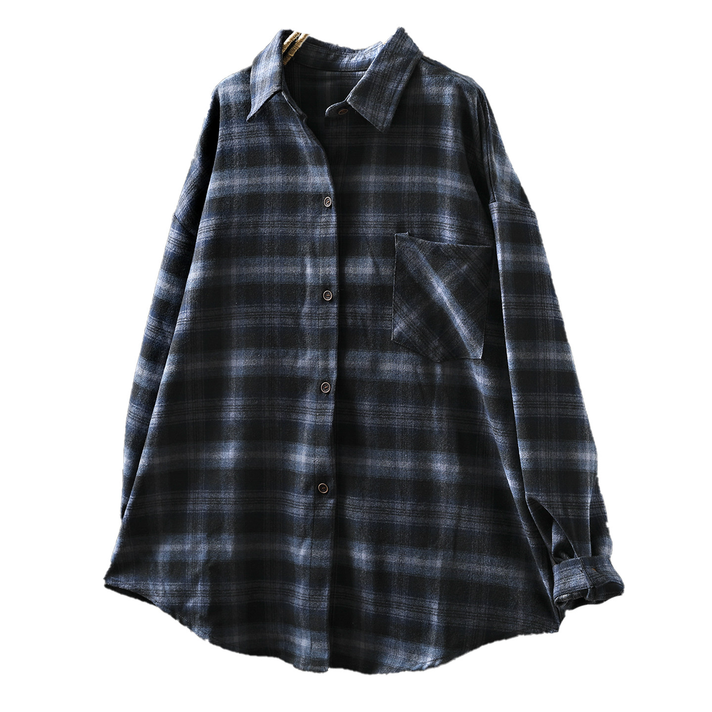 📚 巨好看的开春衬衫女2026新款磨毛格纹单口袋复古气质宽松显瘦衬衣