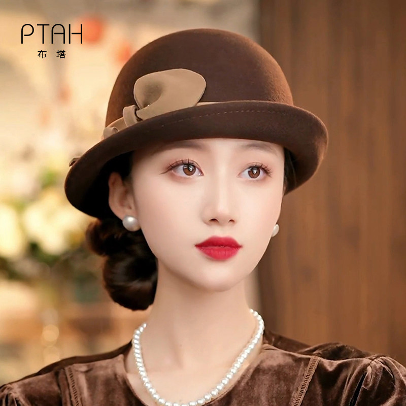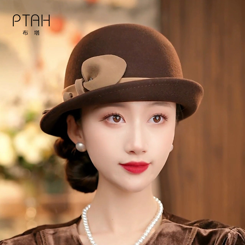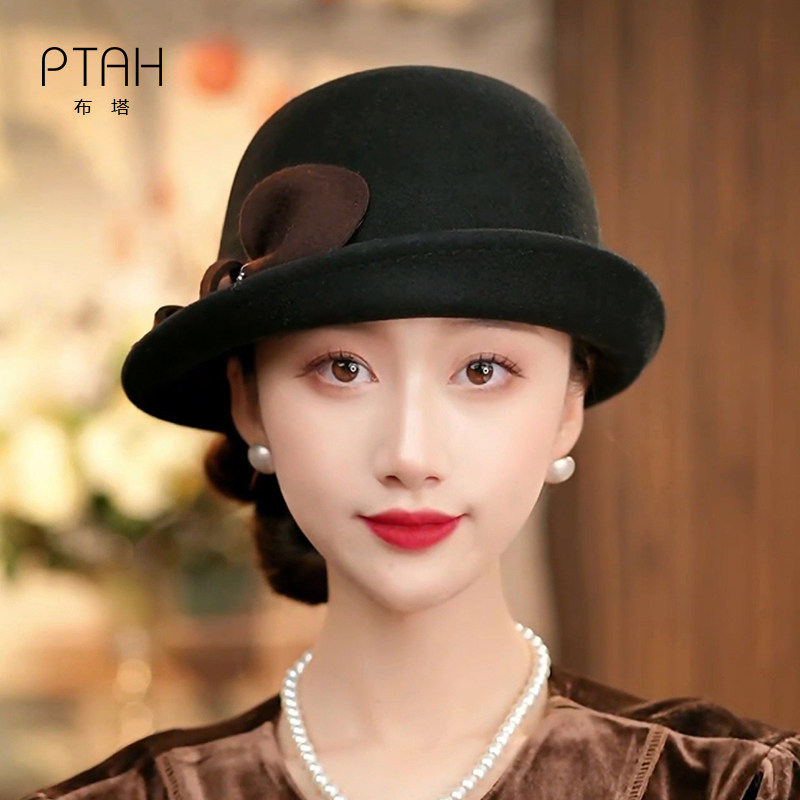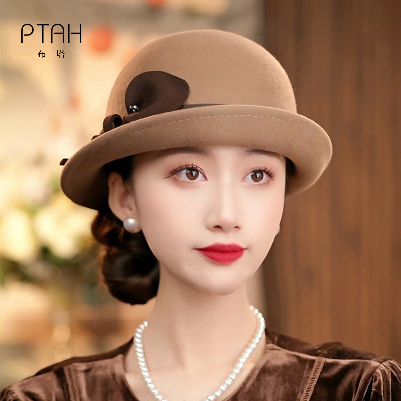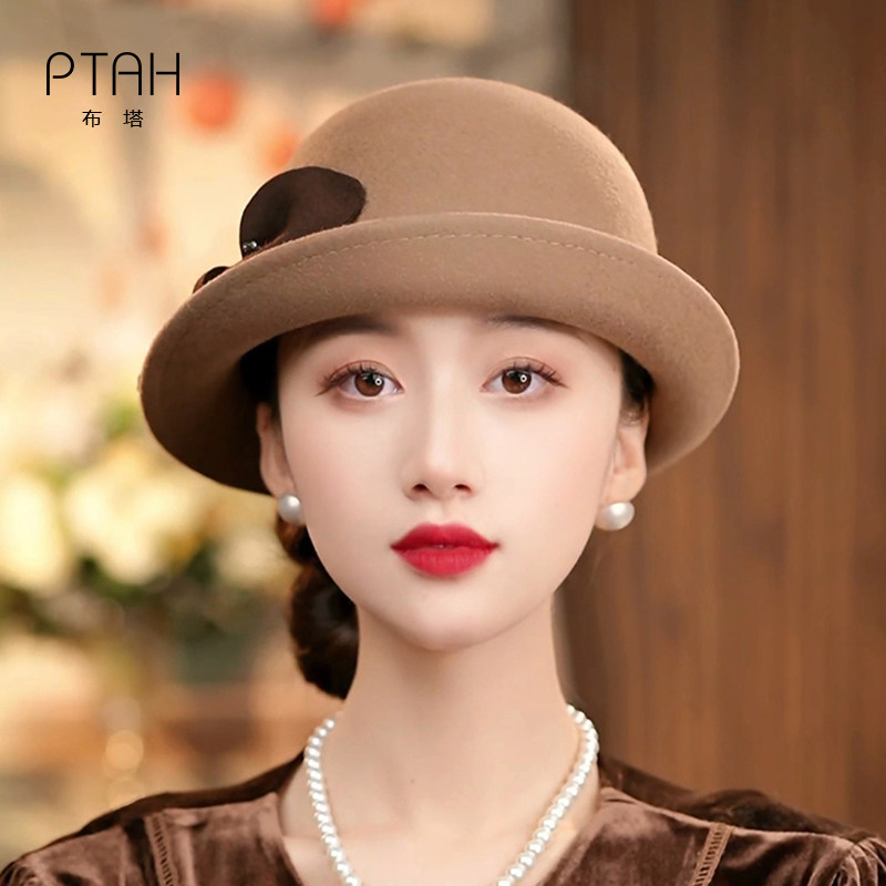#布塔羊毛卷边礼帽 #优雅立体花装饰 #保暖气质盆帽 #定型帽