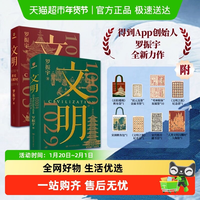 🔥【帆布袋纪念票海报】文明2得到罗振宇新作刷边版,解锁中国历史魅力,券后价仅210!💥