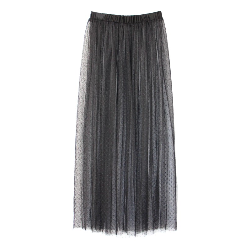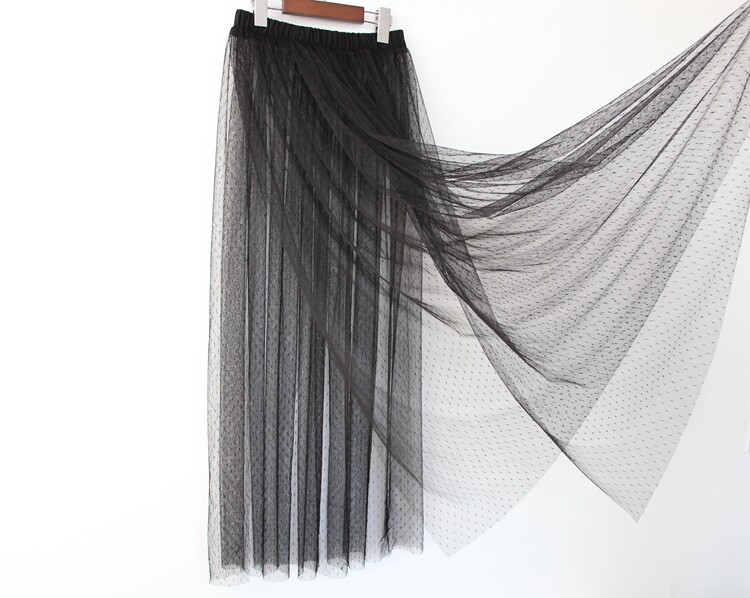 📚 小波点开叉单层网纱裙半身裙蕾丝裙纱裙内搭透视打底裙中长款裙子