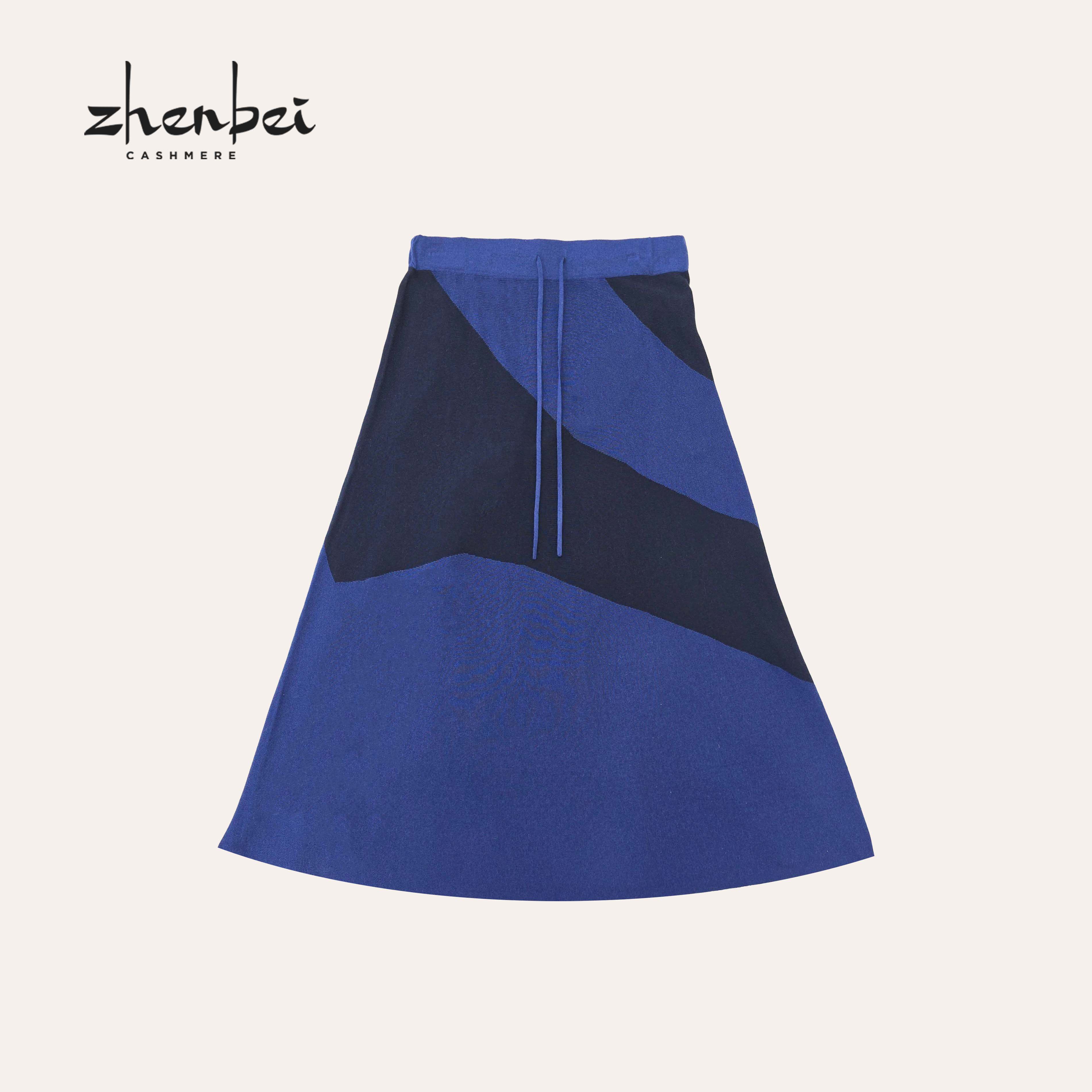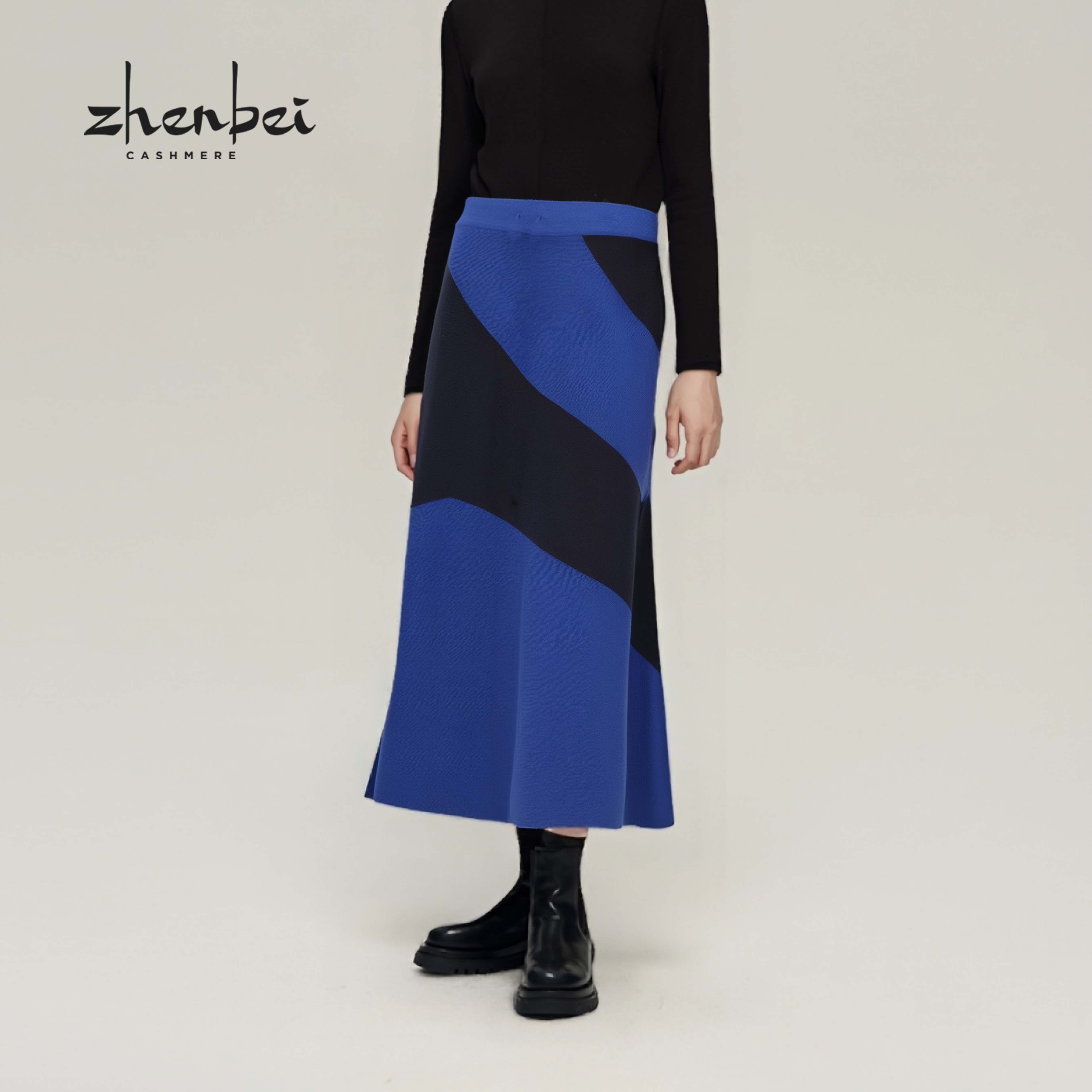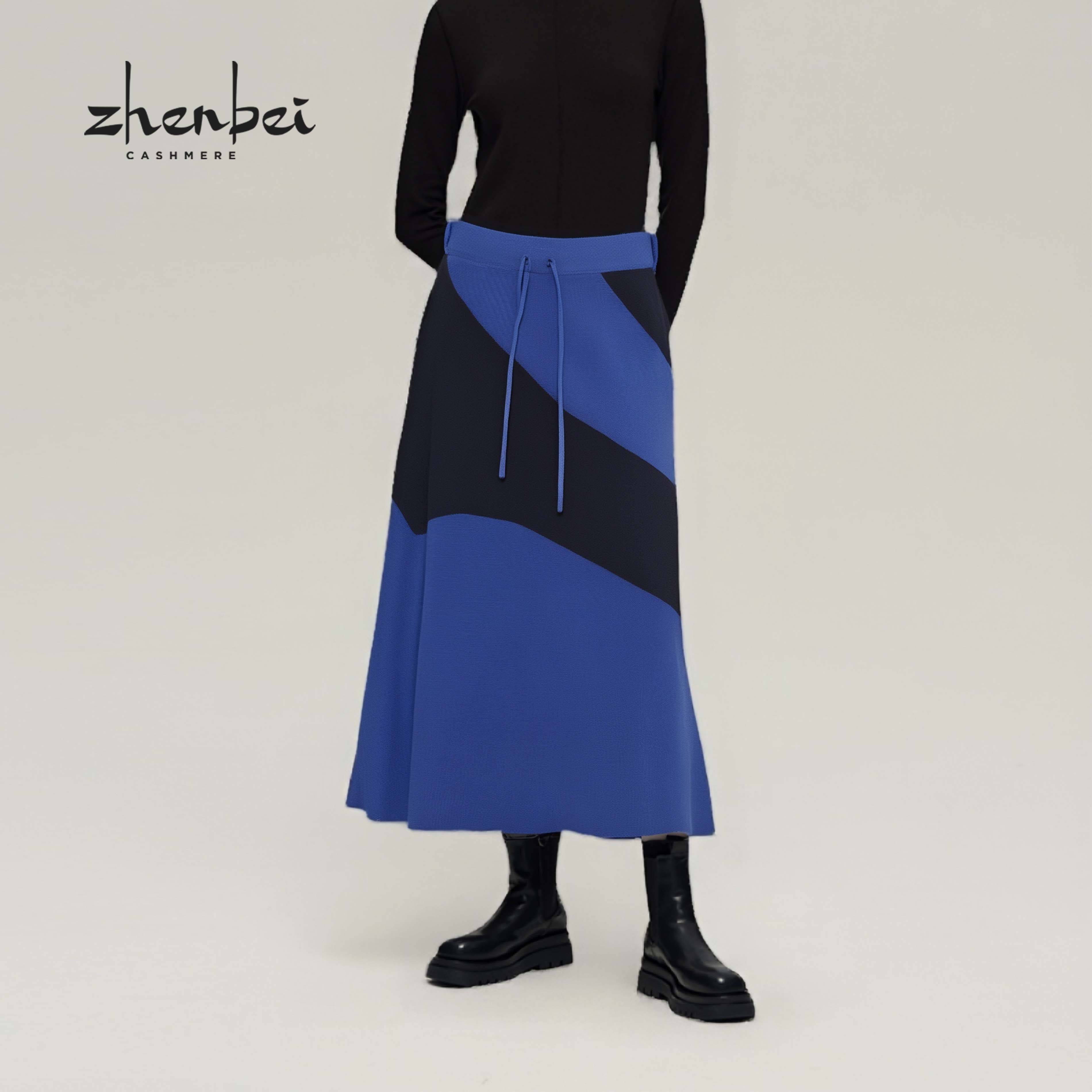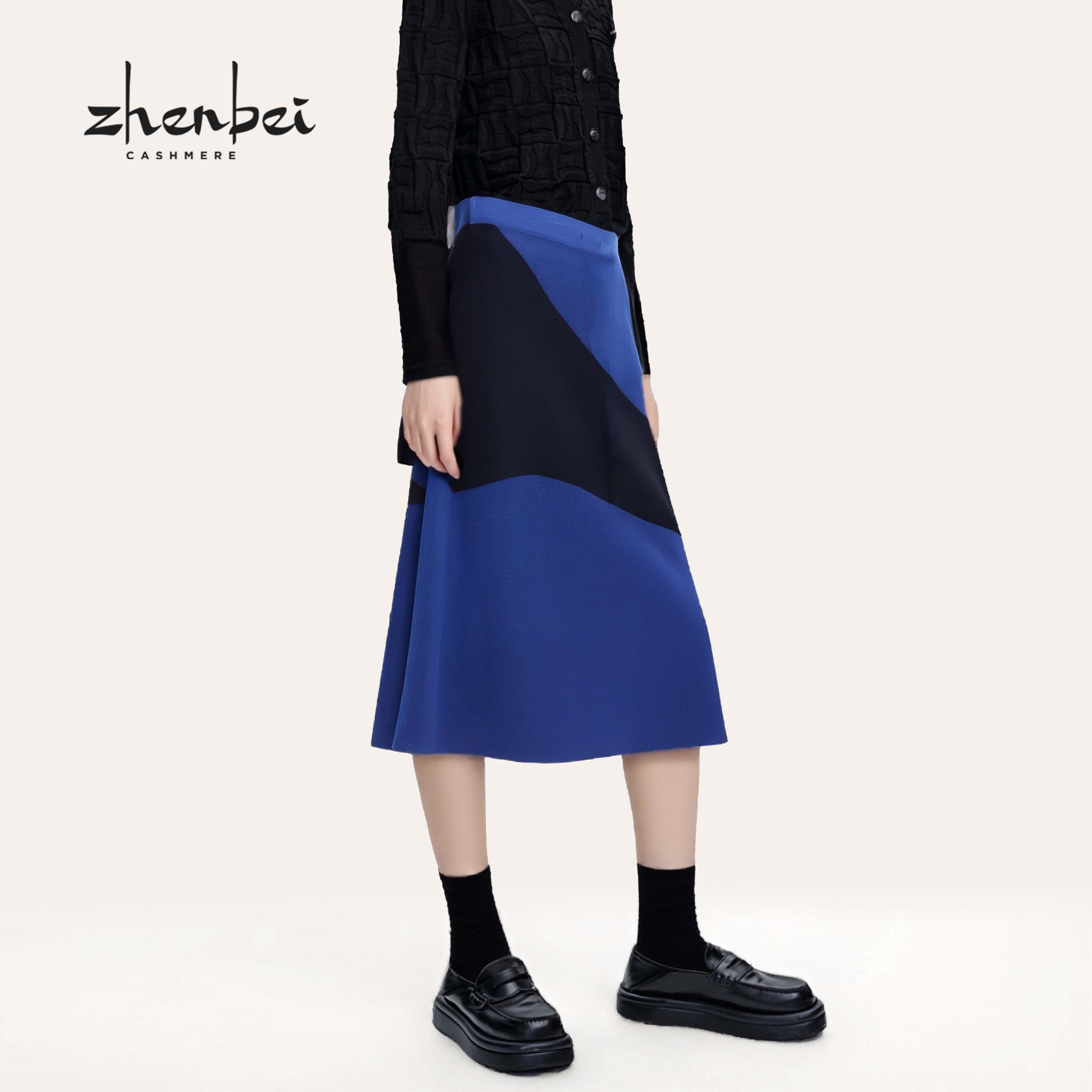 📚 ZB/珍贝2025年春季新款墨水蓝丝绒撞色女半裙A字优雅百搭 67037