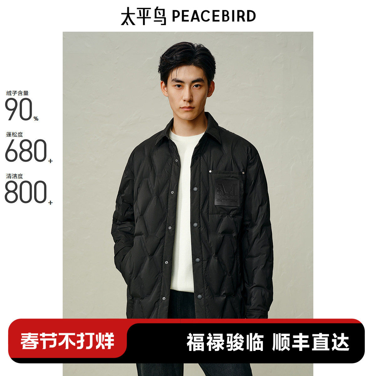 📚 【衬衫式】太平鸟男装 轻薄羽绒服冬季黑色翻领保暖外套防寒夹克