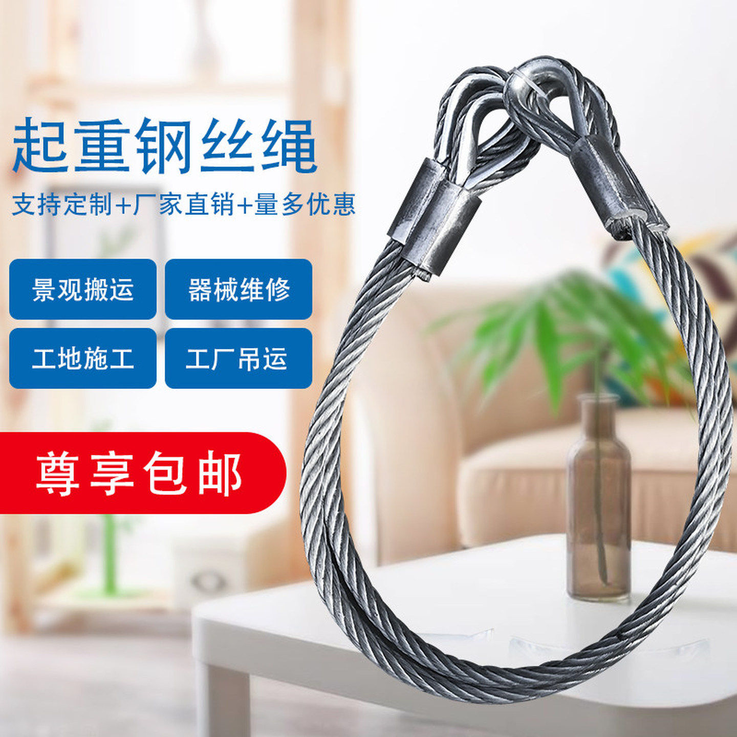 📚 插编钢丝绳头起重吊具20编织32塔吊车吊装专用14软油丝绳子16MM18