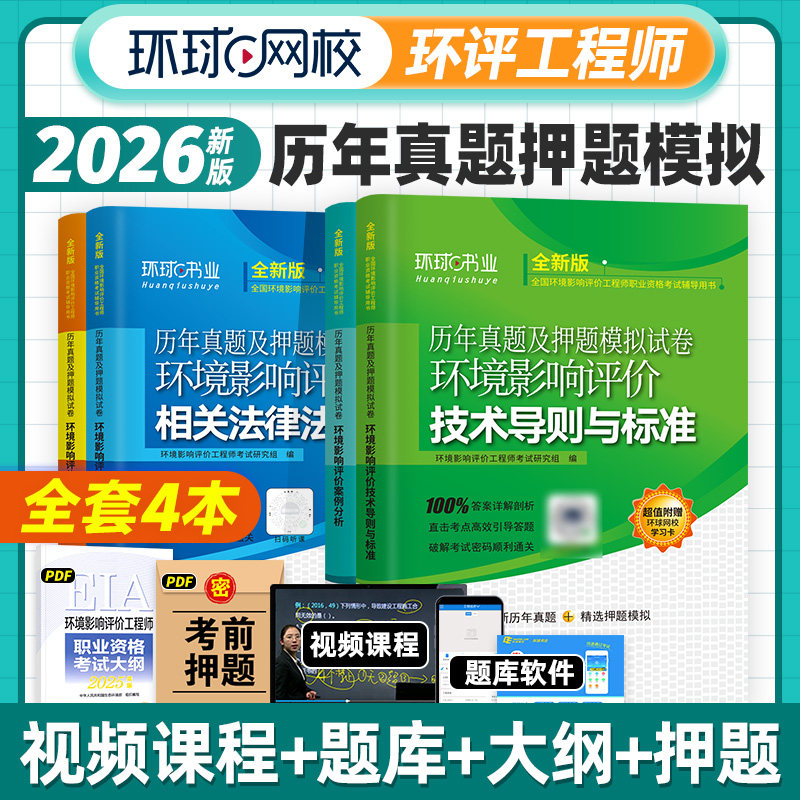 📚 环球网校2026年环评工程师历年真题试卷全套4本考试教材用书环境影响评价环评师案例分析技术导则法律法规技术方法网课试题押题库