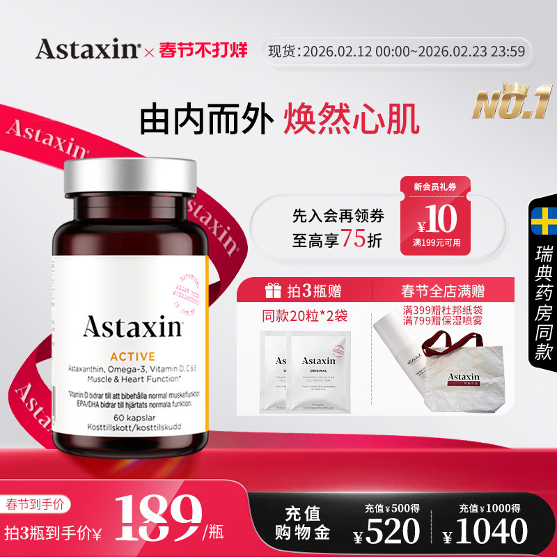 📚 Astaxin阿斯达信98%高吸收高纯omega-3深海鱼油虾青素胶囊60粒/瓶