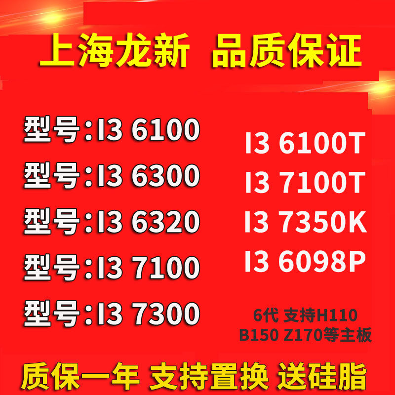 📚 i3 6100 6100T 6098P 7100T 7350K 7300散片1151针 7100cpu处理器