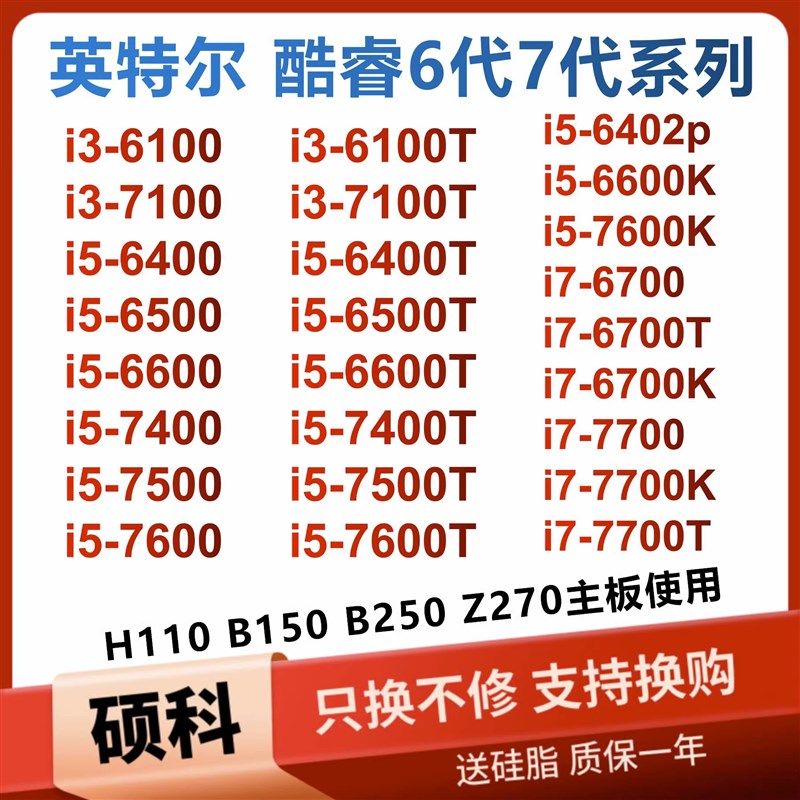 📚 i5 7400 7500 6400 6500T 6600 7600 i3 7100T 6100 i7-6700 7700