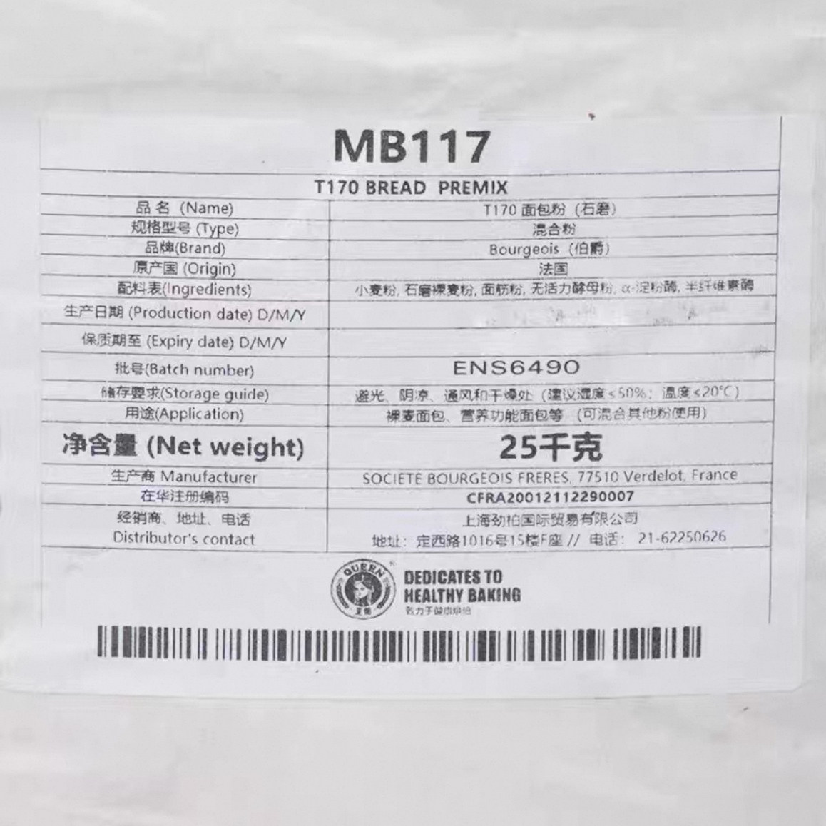 📚 进口法国伯爵T170全黑麦粉粗粒黑裸麦杂粮粉王后小麦面包粉2.5kg
