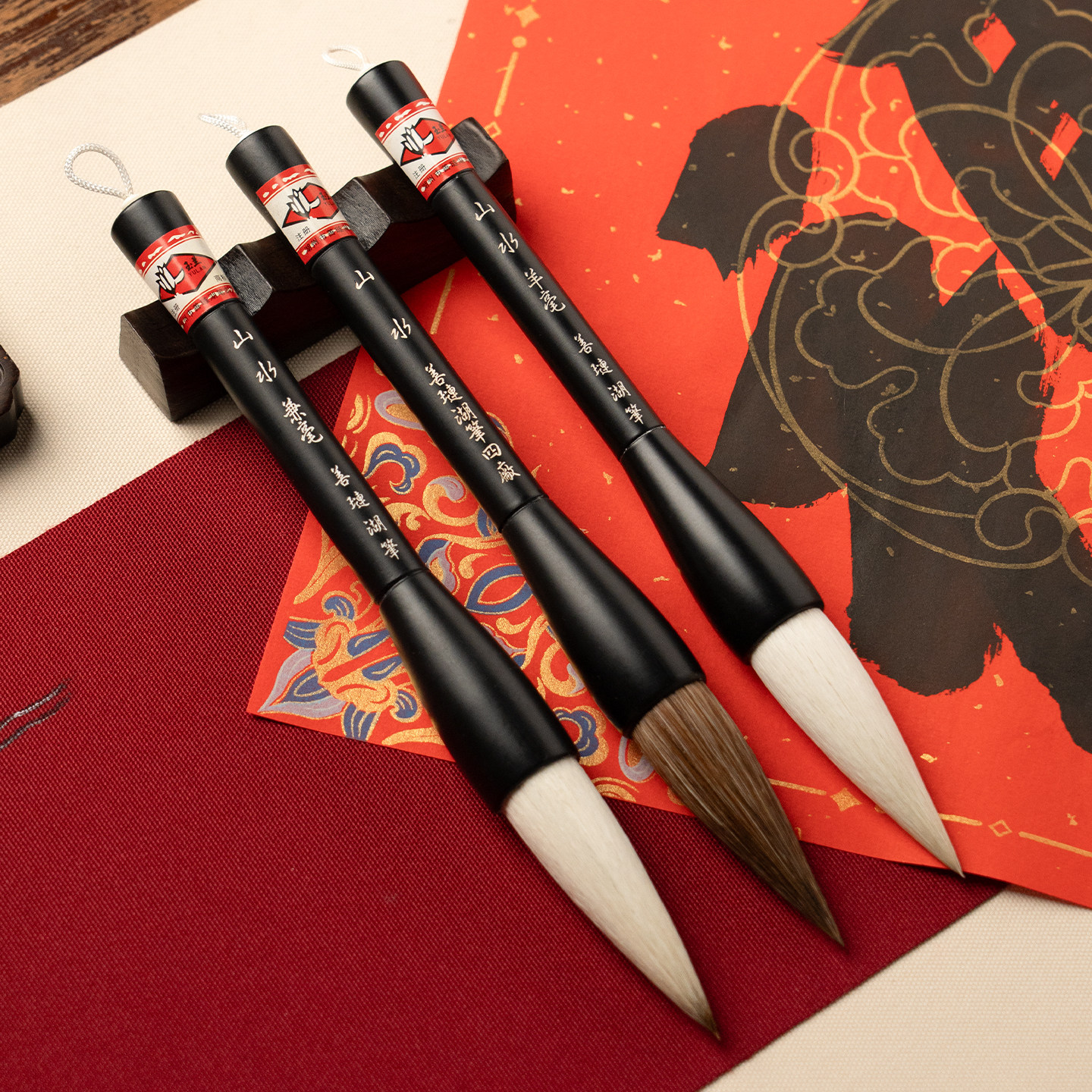 📚 善琏湖笔斗笔大毛笔书法狼毫对联专用套装专业春联大号成人书法国画羊毫大字兼毫对联笔联笔提斗文房四宝软笔
