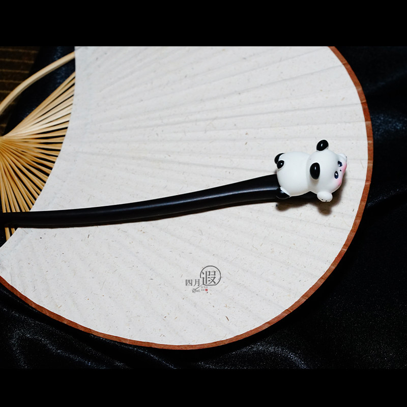 📚 一只熊猫 ▏可爱日常趣味胖胖熊猫发簪儿童原创黑檀木盘发簪子