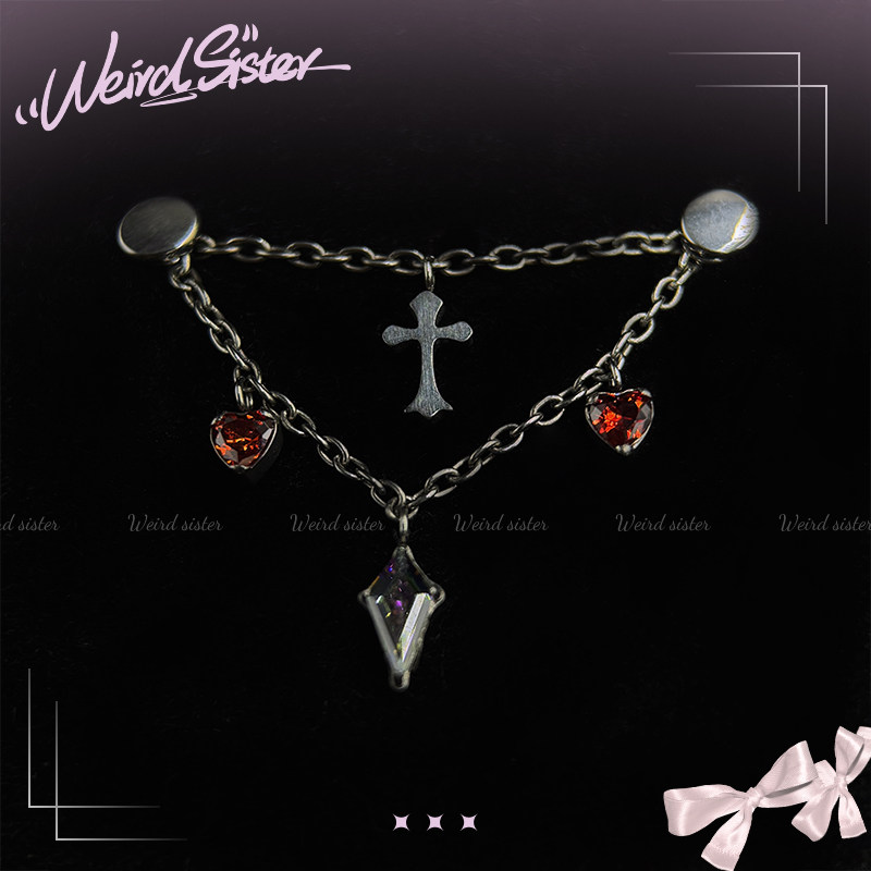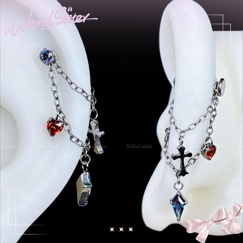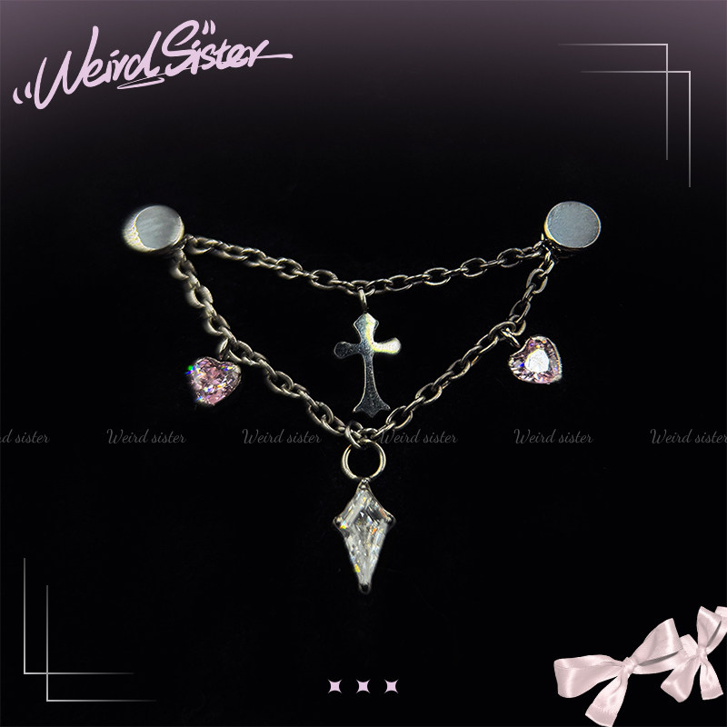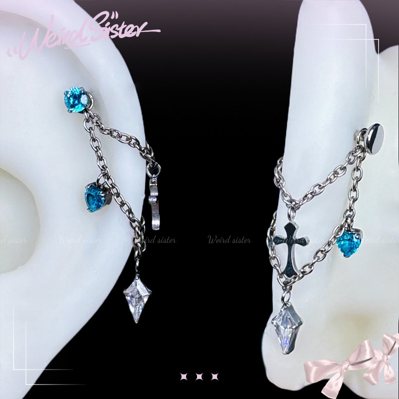 📚 Weird sister 暗黑风链条十字架锆石耳骨耳蜗helix钉钛合金防过敏