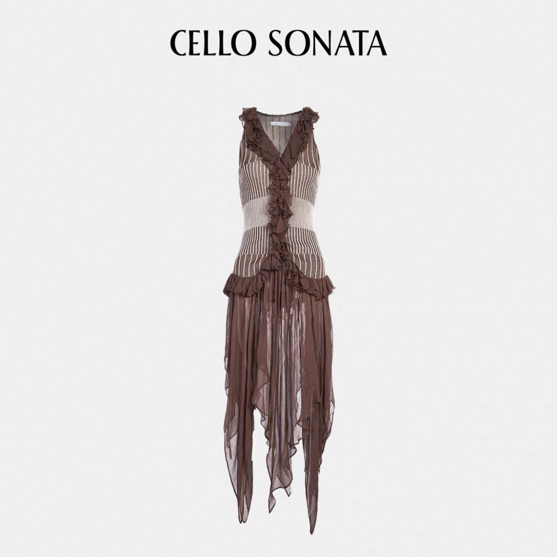 📚 Cellosonata | 26春夏新款无袖花边针织拼接不规则下摆连衣裙