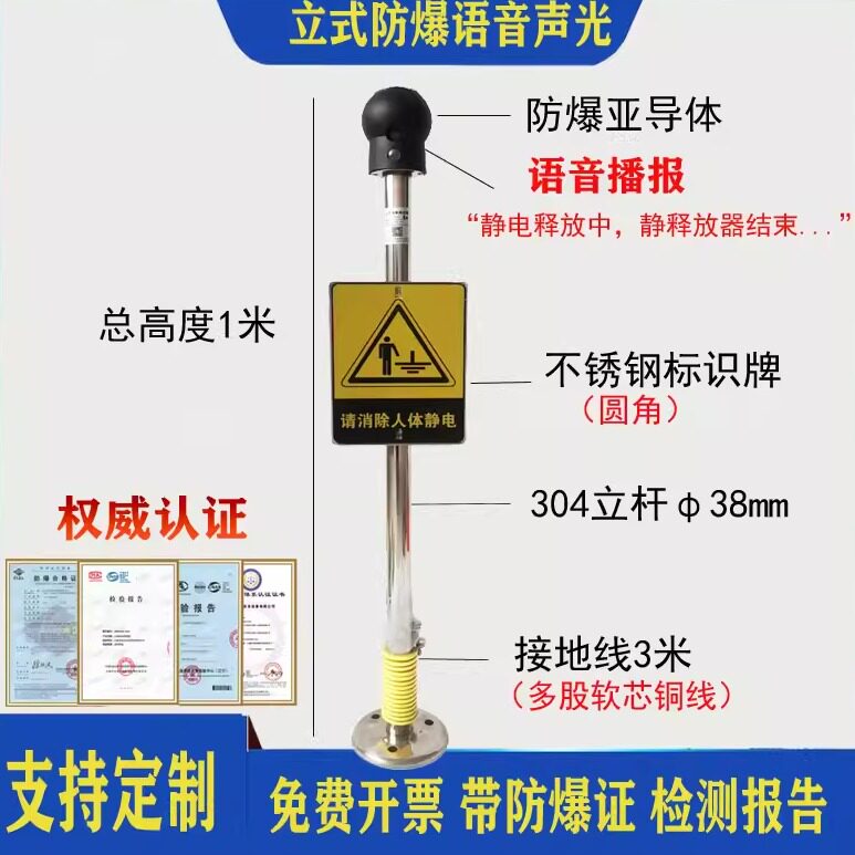 📚 标安人体静电释放器防爆语音声光数显工业智能人体静电消除仪器柱