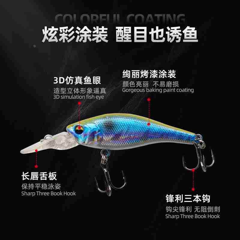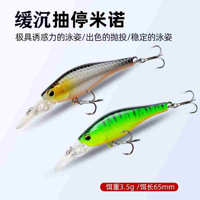 📚 新款米诺缓沉含舌板长度65mm 3.5g 路亚饵ST36奥金三本钩