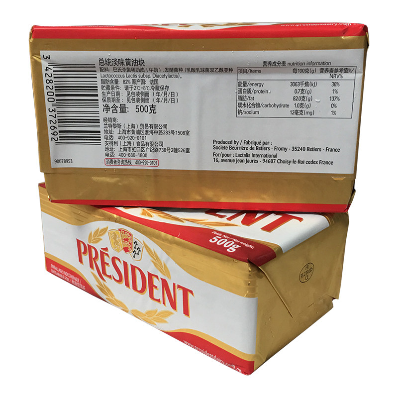 📚 清真 总统牌 淡味无盐 President Unsalted Butter 黄油块 500g
