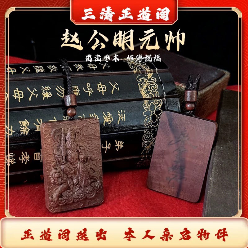 📚 龙虎山天师府直发官方天然雷击枣木吊坠挂件一体雕刻吊坠赵公明