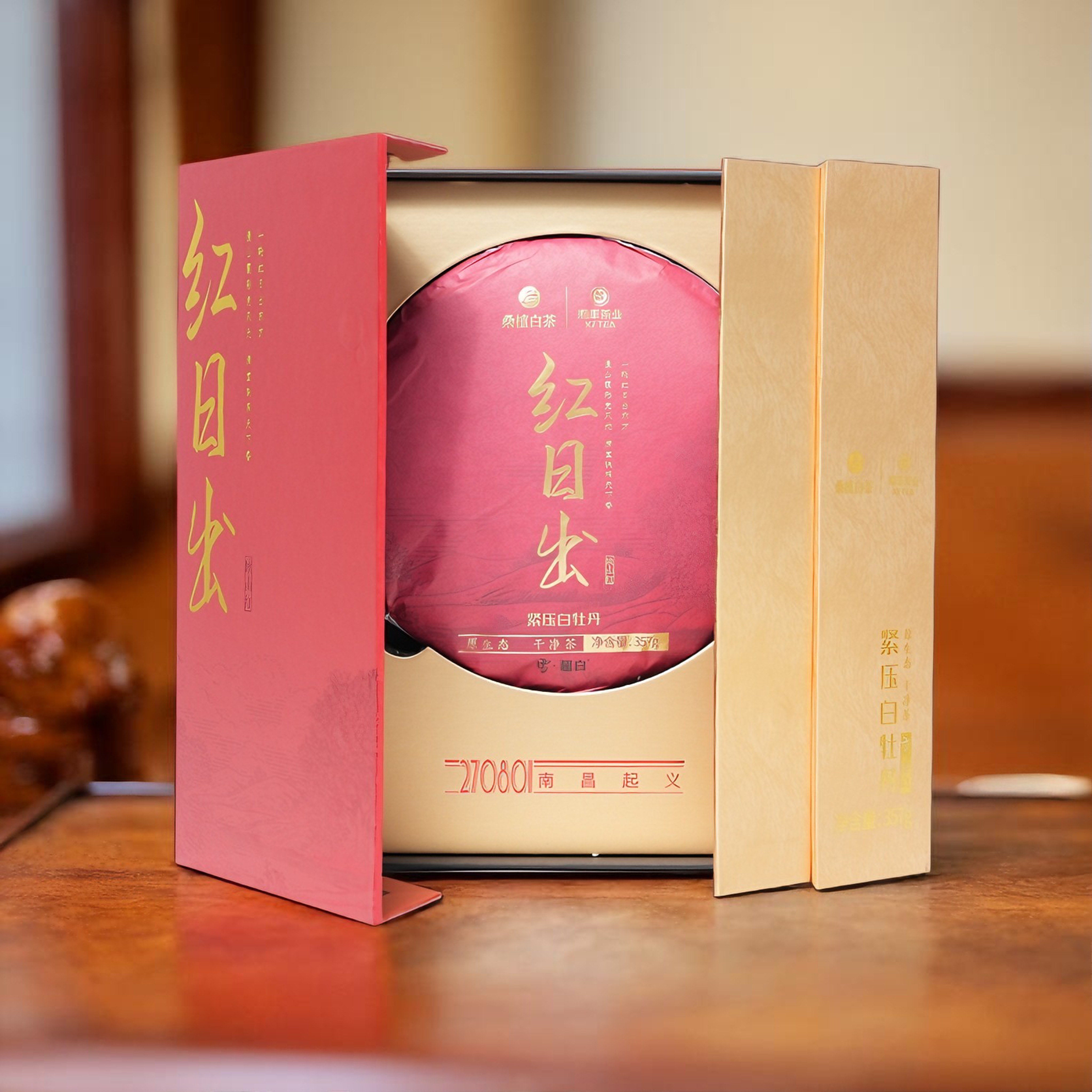 📚 湘丰茶业湖南桑植白茶特级映山红红日出紧压白牡丹357g饼礼盒装