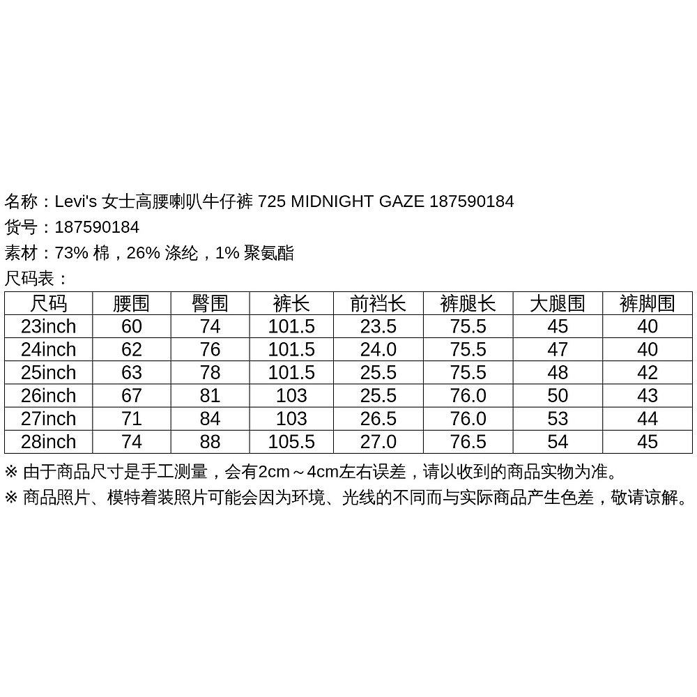 📚 1h可退 日本直邮Levi's 女士高腰喇叭牛仔裤 725 MIDNIGHT GAZE 1