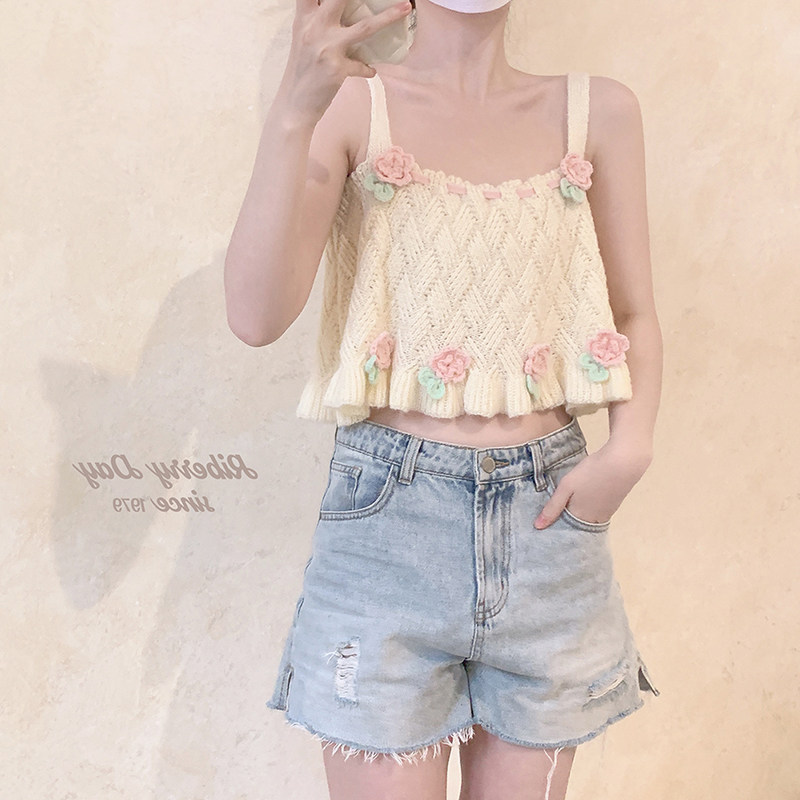 🍃夏日炎炎,甜美与辣味交织,这款日系甜辣可爱的手工花朵针织吊带女夏装,简直让人爱不释手!💓