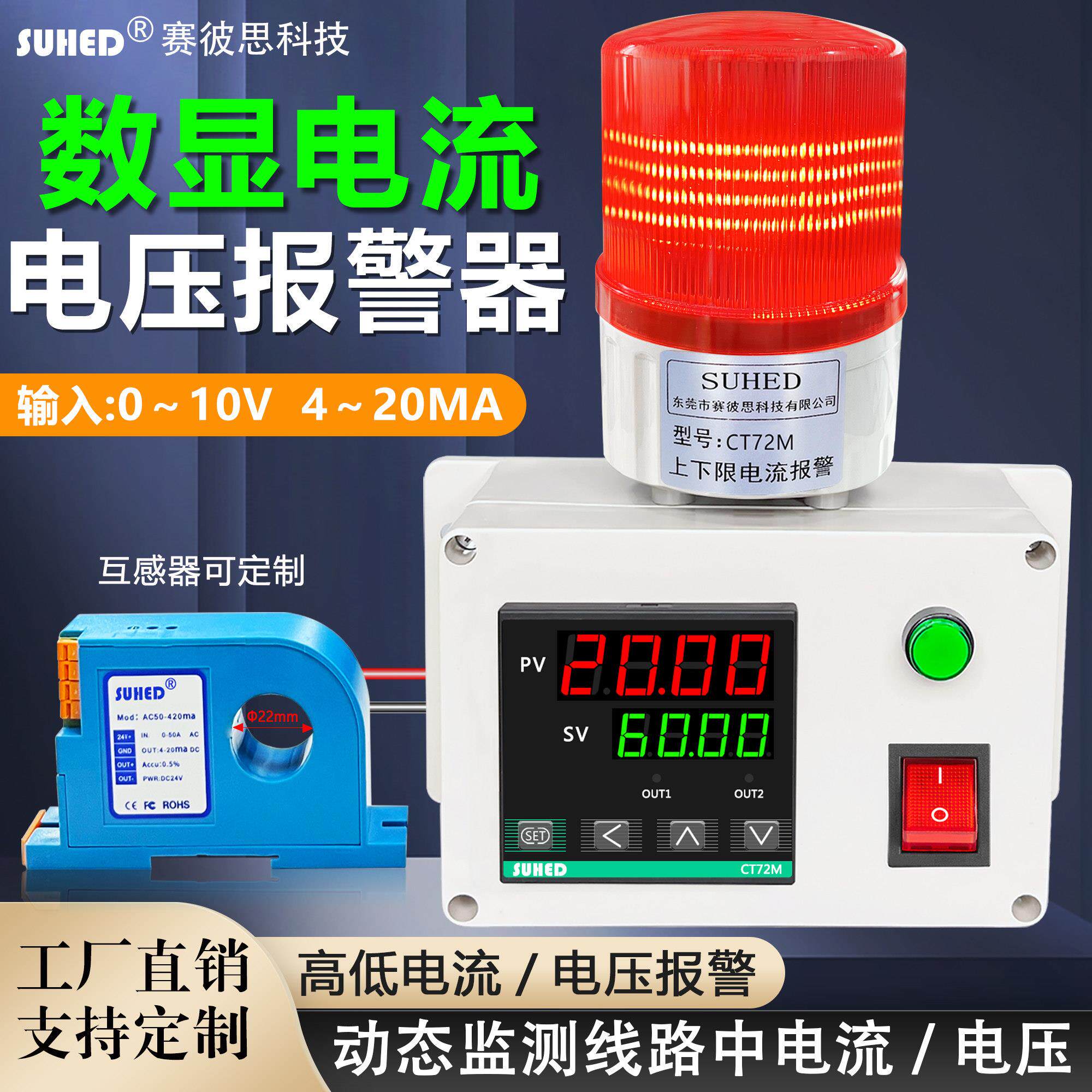 📚 开 口式检测仪电流互感警报器变送显示高精度智能数显表过载器控