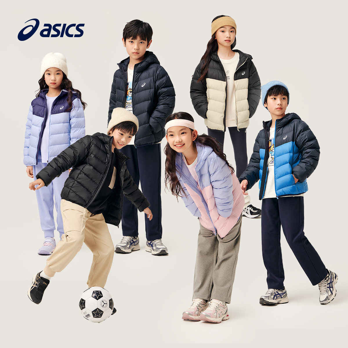 📚 ASICS/亚瑟士童装保暖防水防污羽绒服轻薄连帽外套男女童排骨藏青