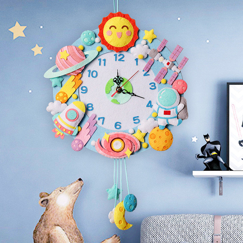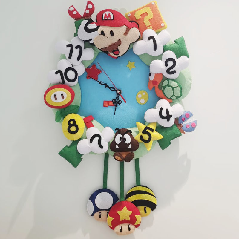 📚 不织布儿童diy马里奥挂钟创意钟表手工布艺材料包卡通动物挂饰
