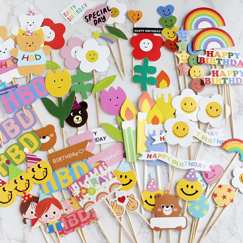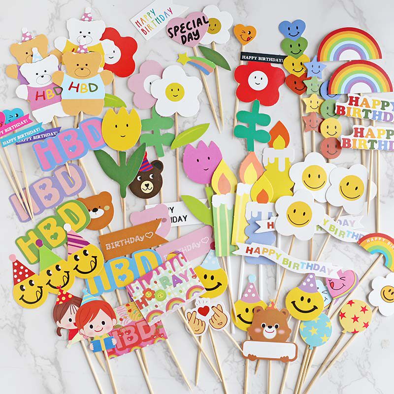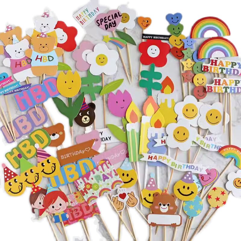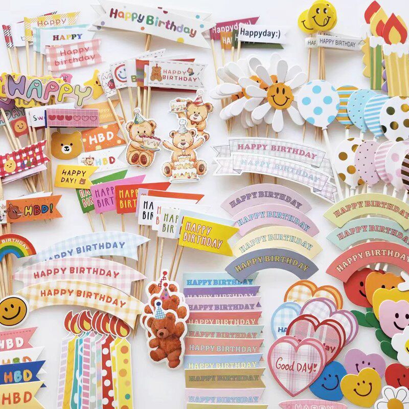 📚 韩国网红ins风彩旗蛋糕装饰插件HBD笑脸格子帽子太阳花朵小熊爱心