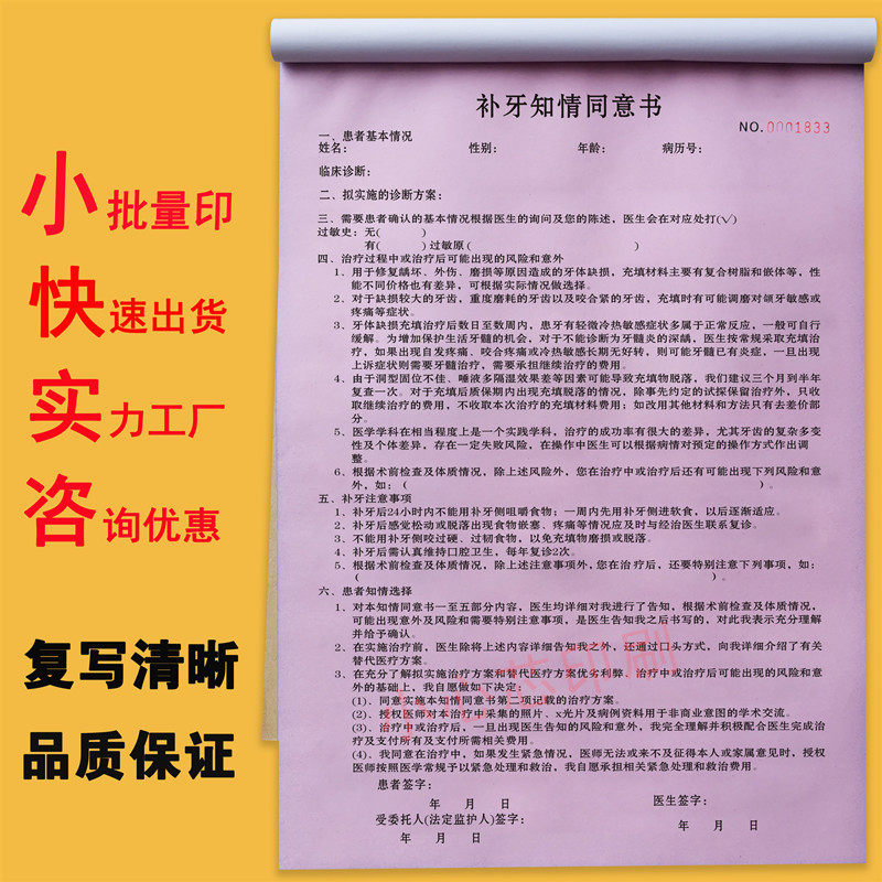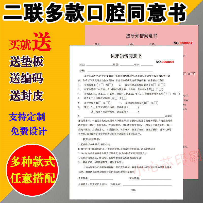 📚 二联口腔牙科诊所拔牙知情同意书补牙种植正畸美学根管治疗告知书
