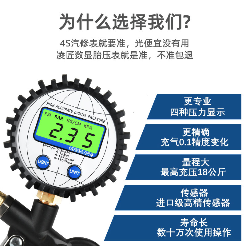📚 汽车轮胎气压计4S汽修店高精度胎压表测量检测加打充气枪铜快接头