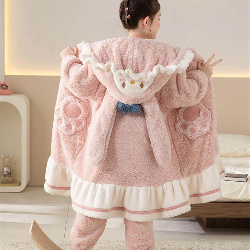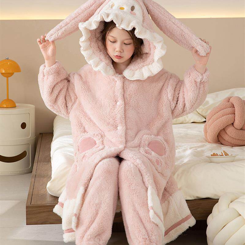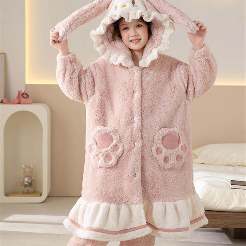 📚 2025新款秋冬季珊瑚绒儿童睡袍女甜美公主风女童睡衣法兰绒家居服