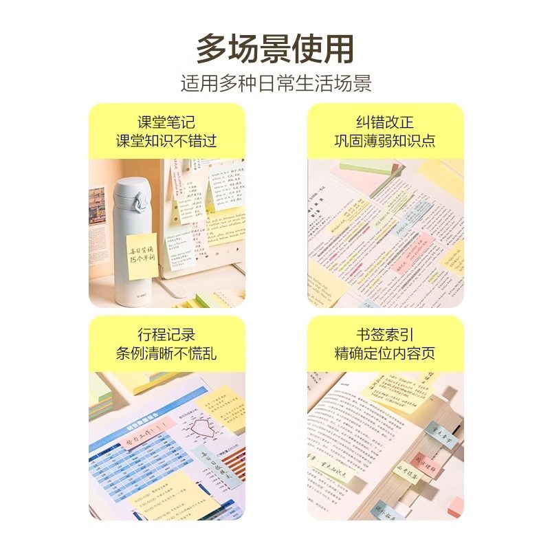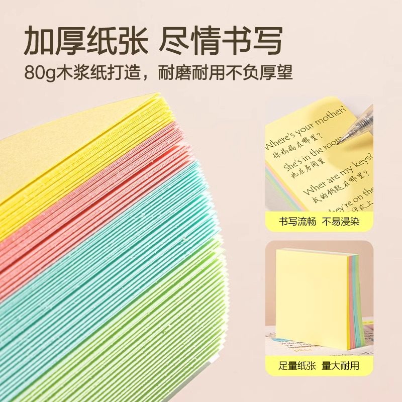 📚 得力彩色告示贴便利贴学生用创意即时贴大中小号标签贴粘性可撕便签纸 76*76mm留言纸N次贴外卖记事贴小本子
