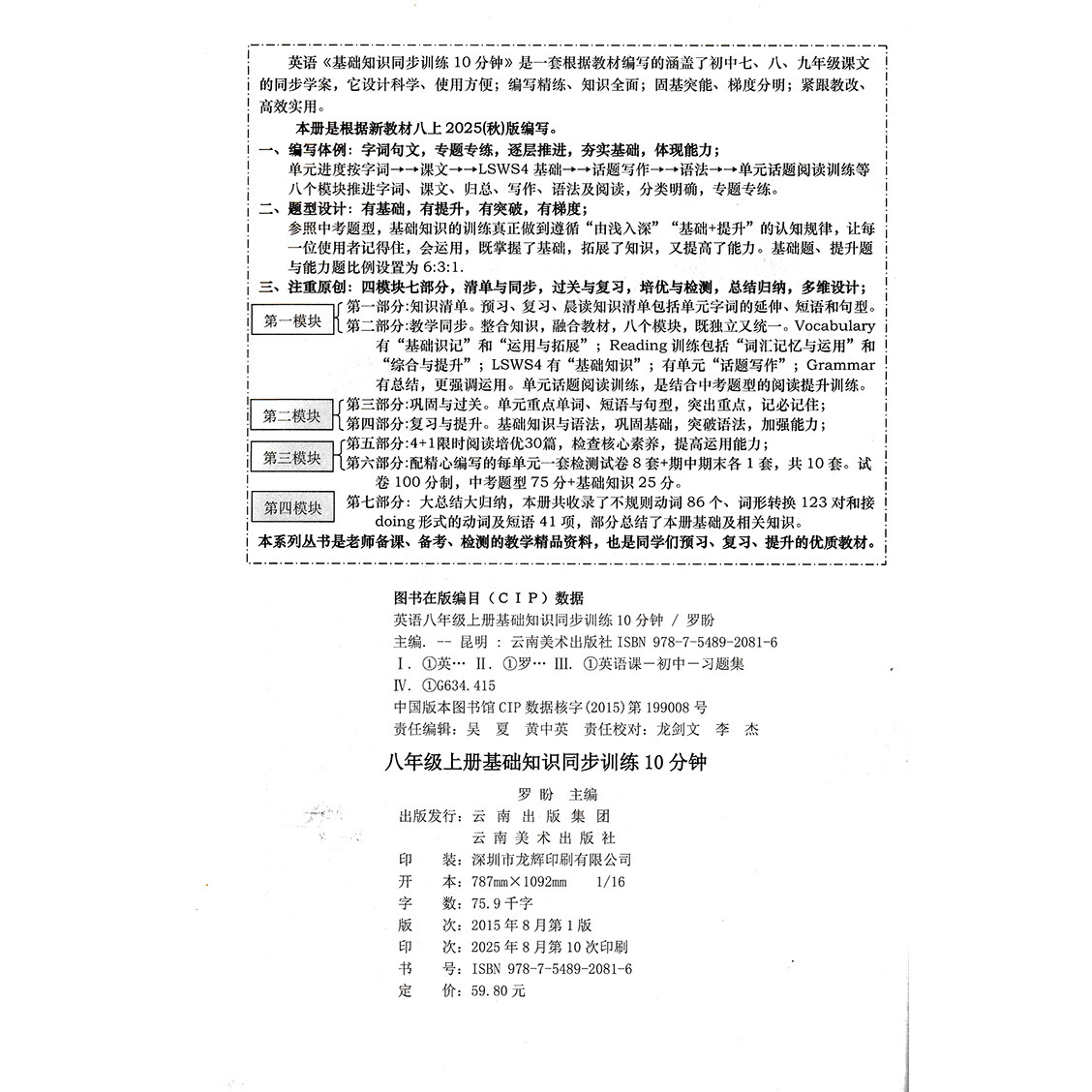 📚 2025秋新版深圳专版基础知识同步训练10分钟英语八年级上册含试卷配电子版课件答案初中英语教材沪教牛津版9787548920816