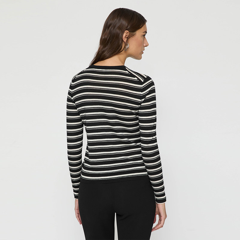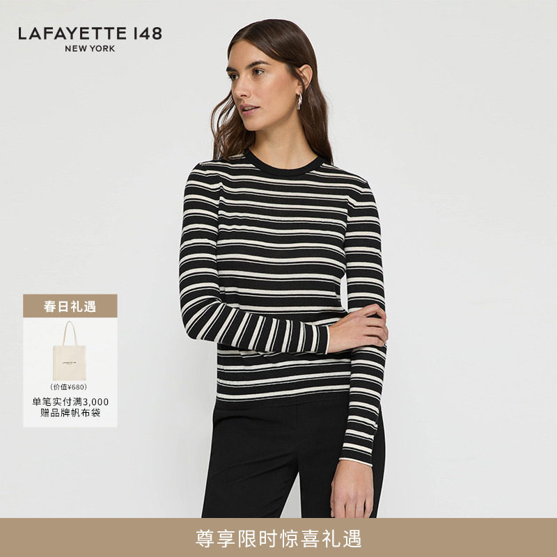 📚 LAFAYETTE148/拉飞逸黑白条纹羊绒针织轻薄上衣