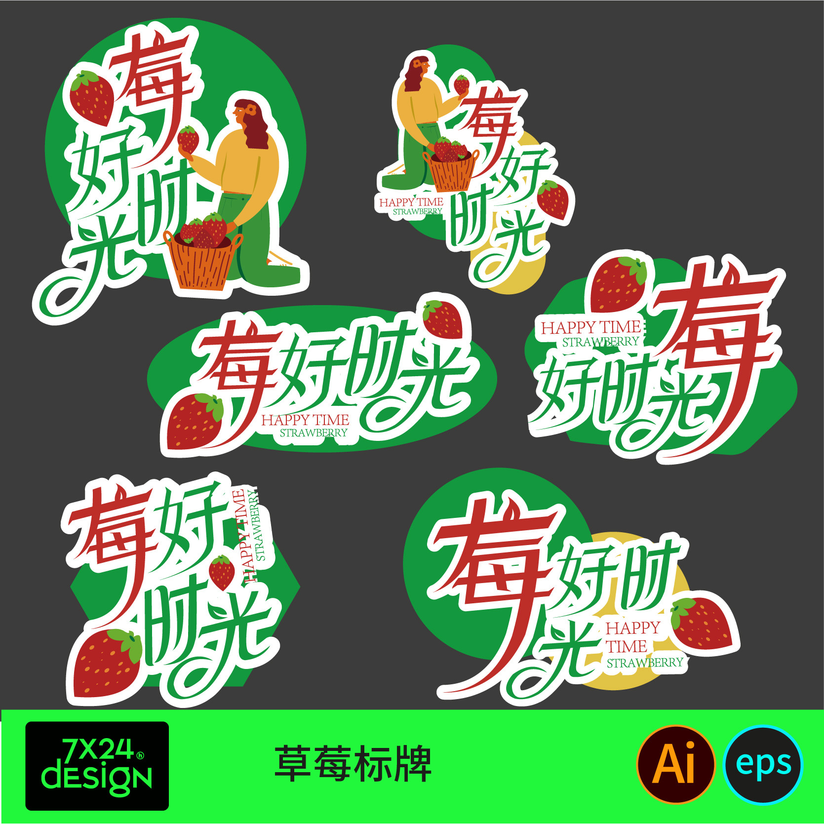 📚 趣味卡通草莓采摘种植园活动异形KT板手持举指示标识牌AI设计素材