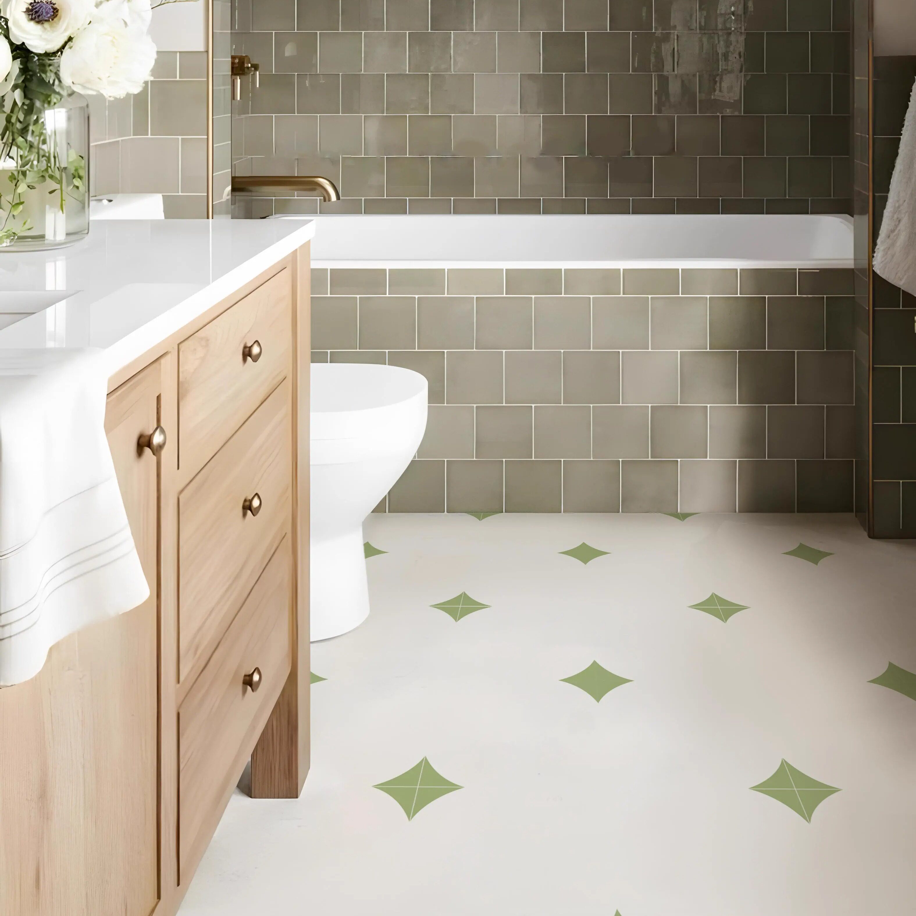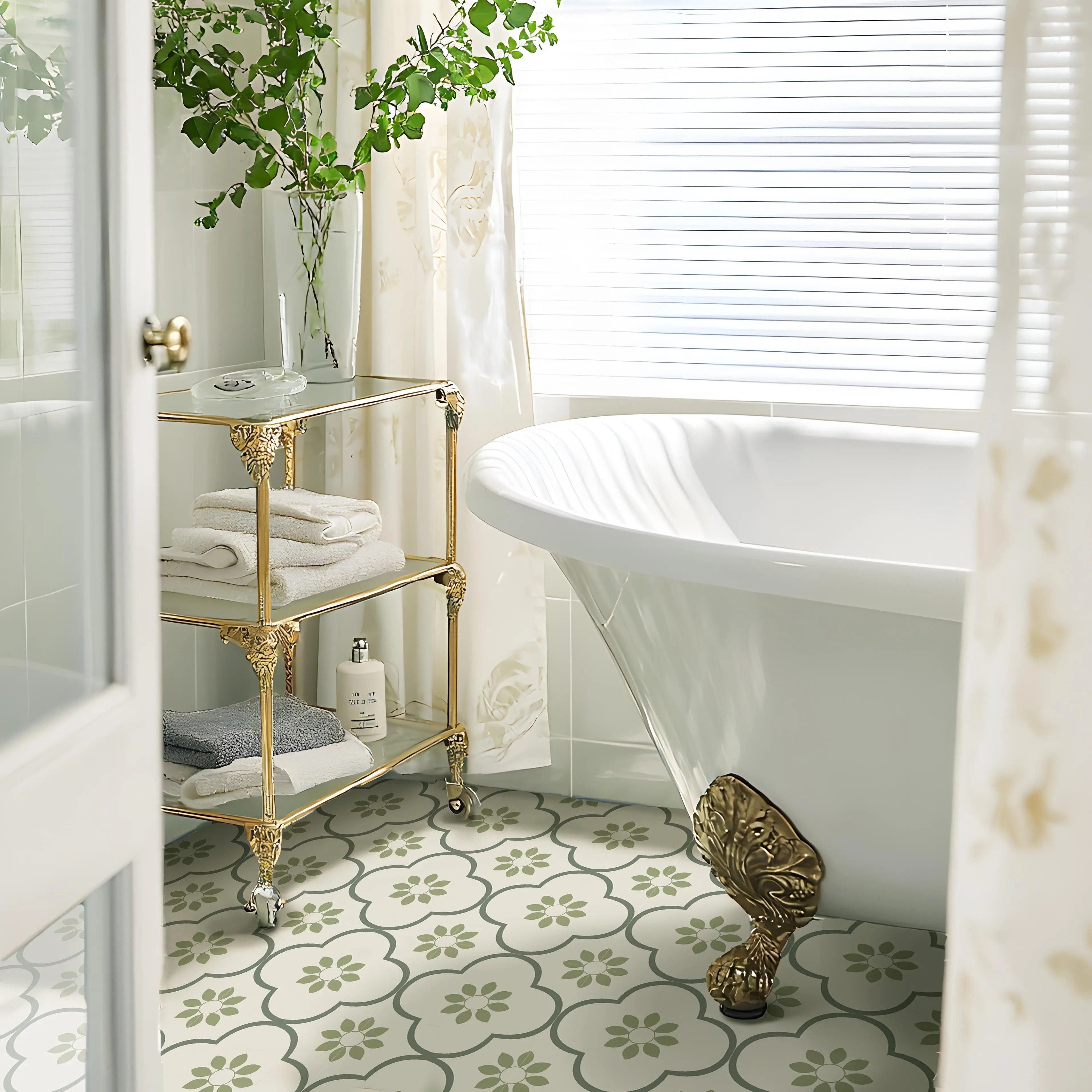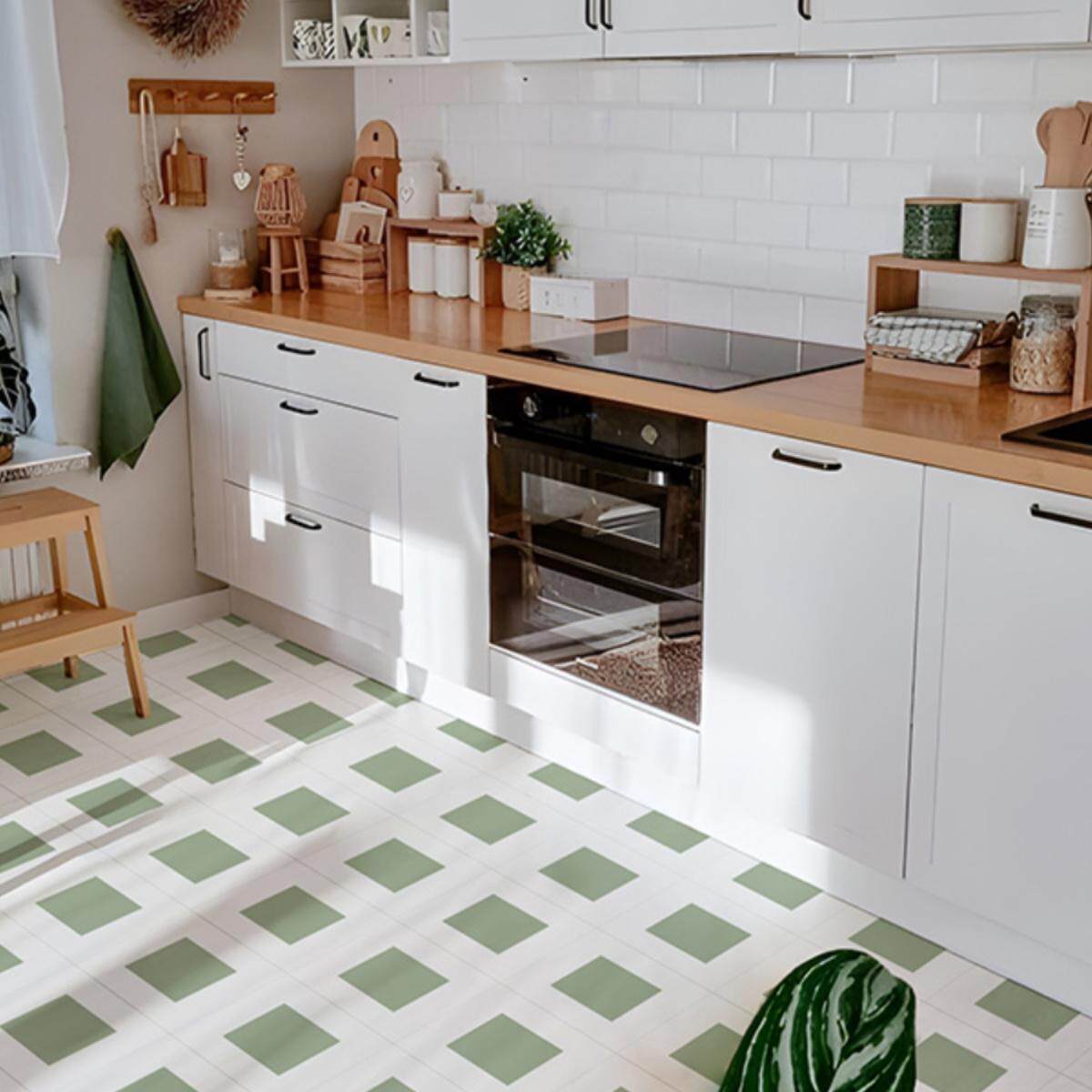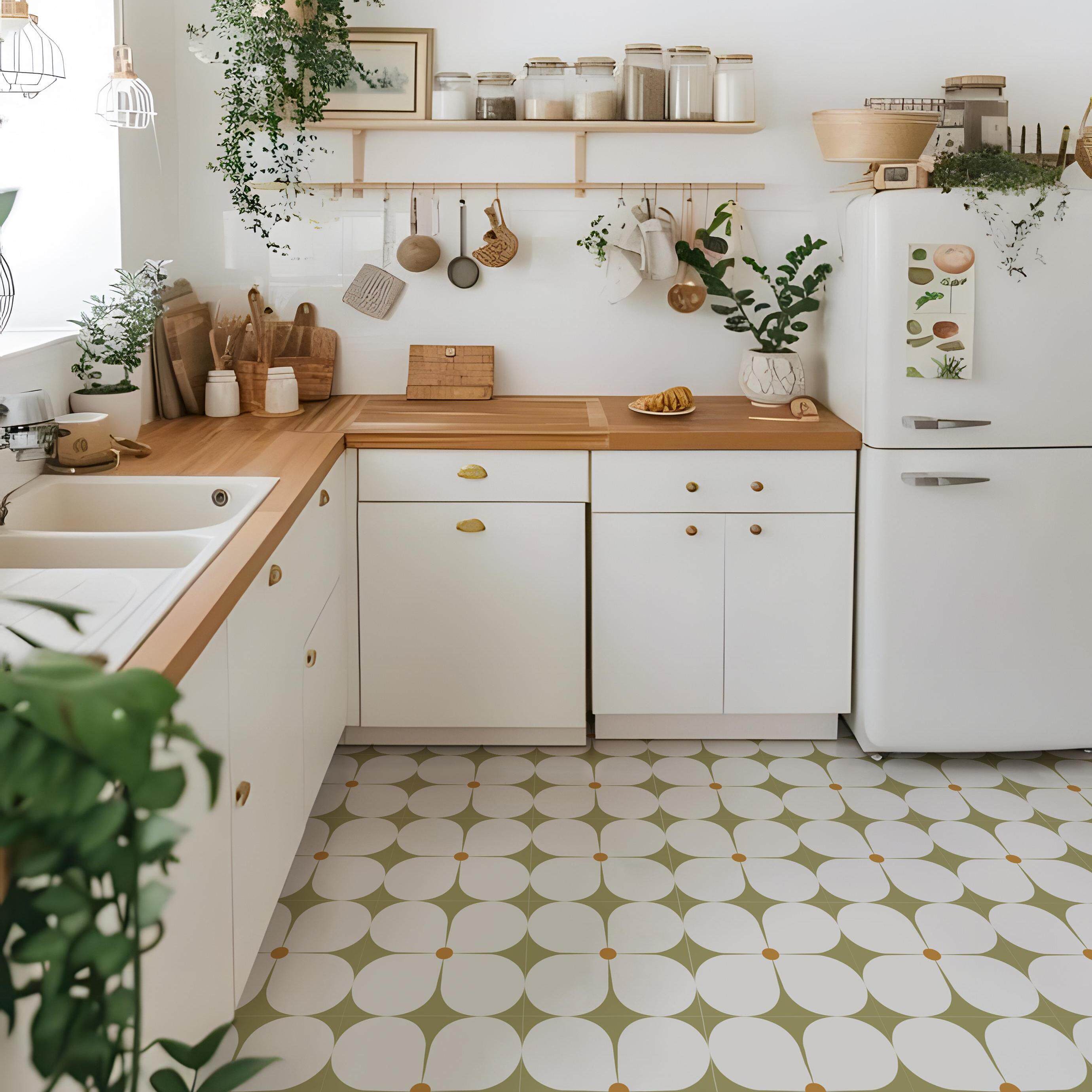 📚 春日迟迟丨法式清新厨房地面翻新贴纸瓷砖改造防水墙贴花卉布置