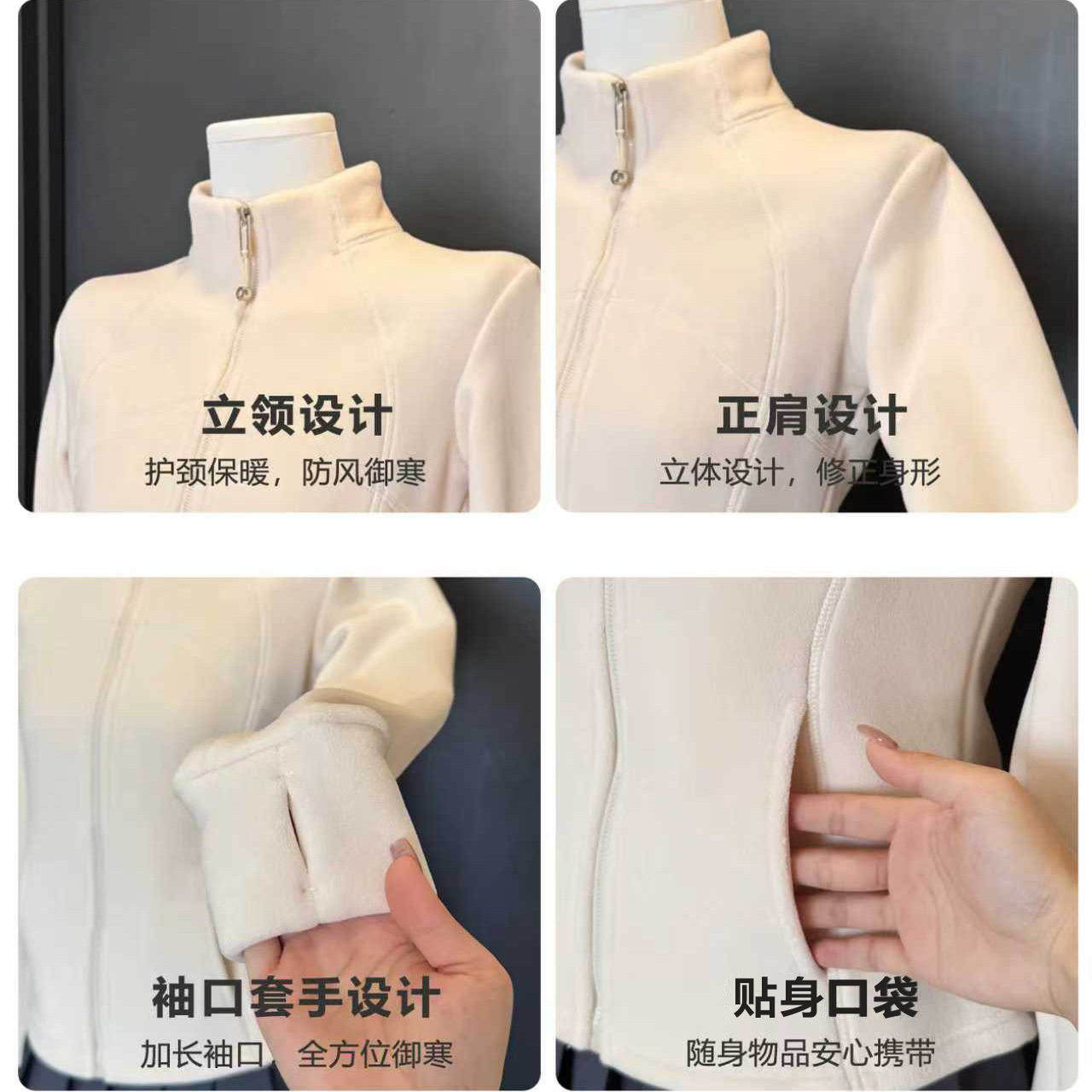 📚 2025加厚双面奥摇粒绒卫衣外套女秋冬款立领修身冲锋衣内胆瑜伽服
