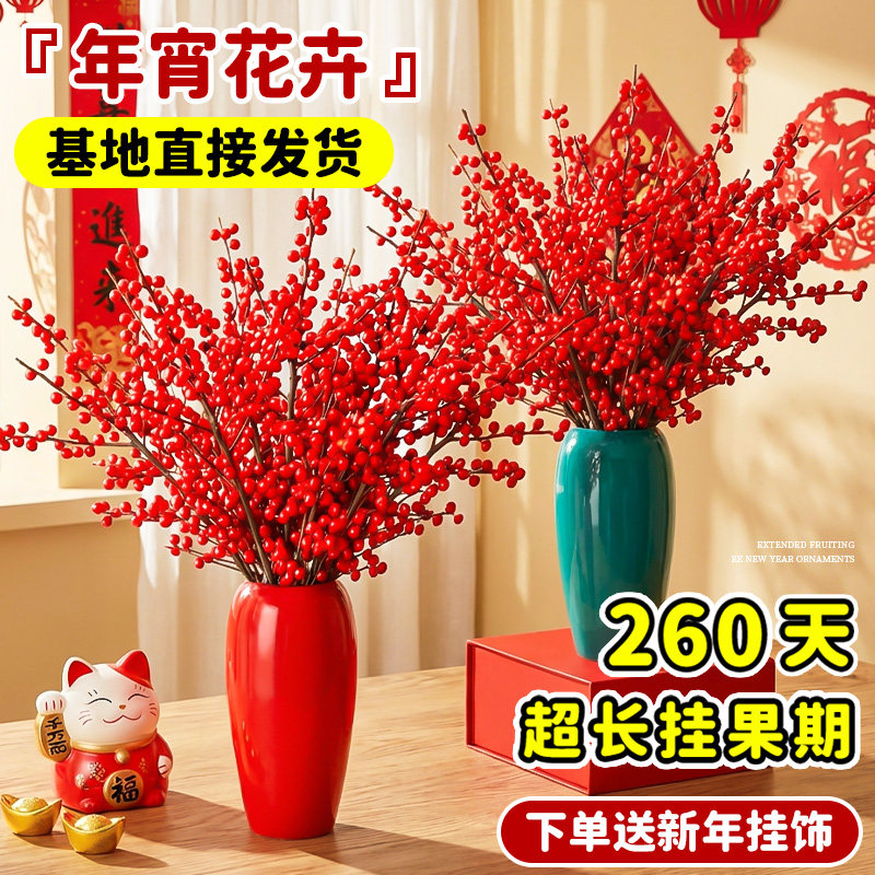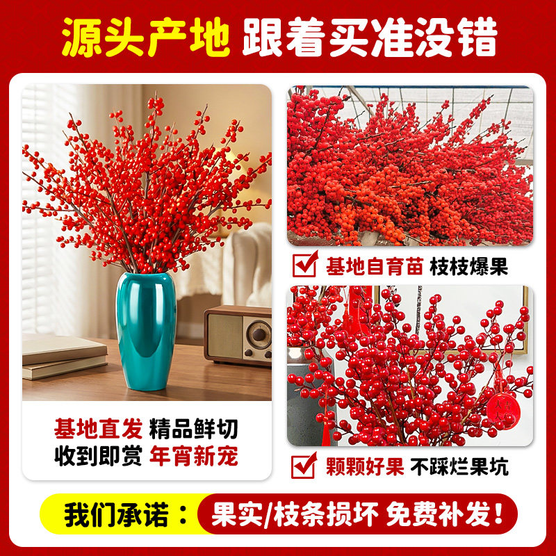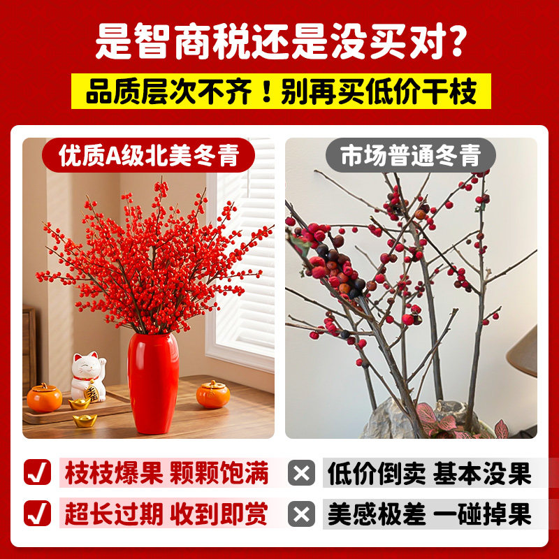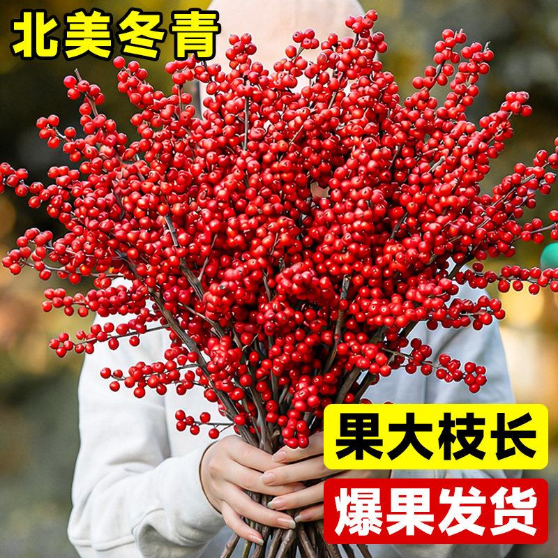 📚 北美冬青红果真花鲜切枝银柳红腊梅春节新年宵花水培客厅插花旺宅