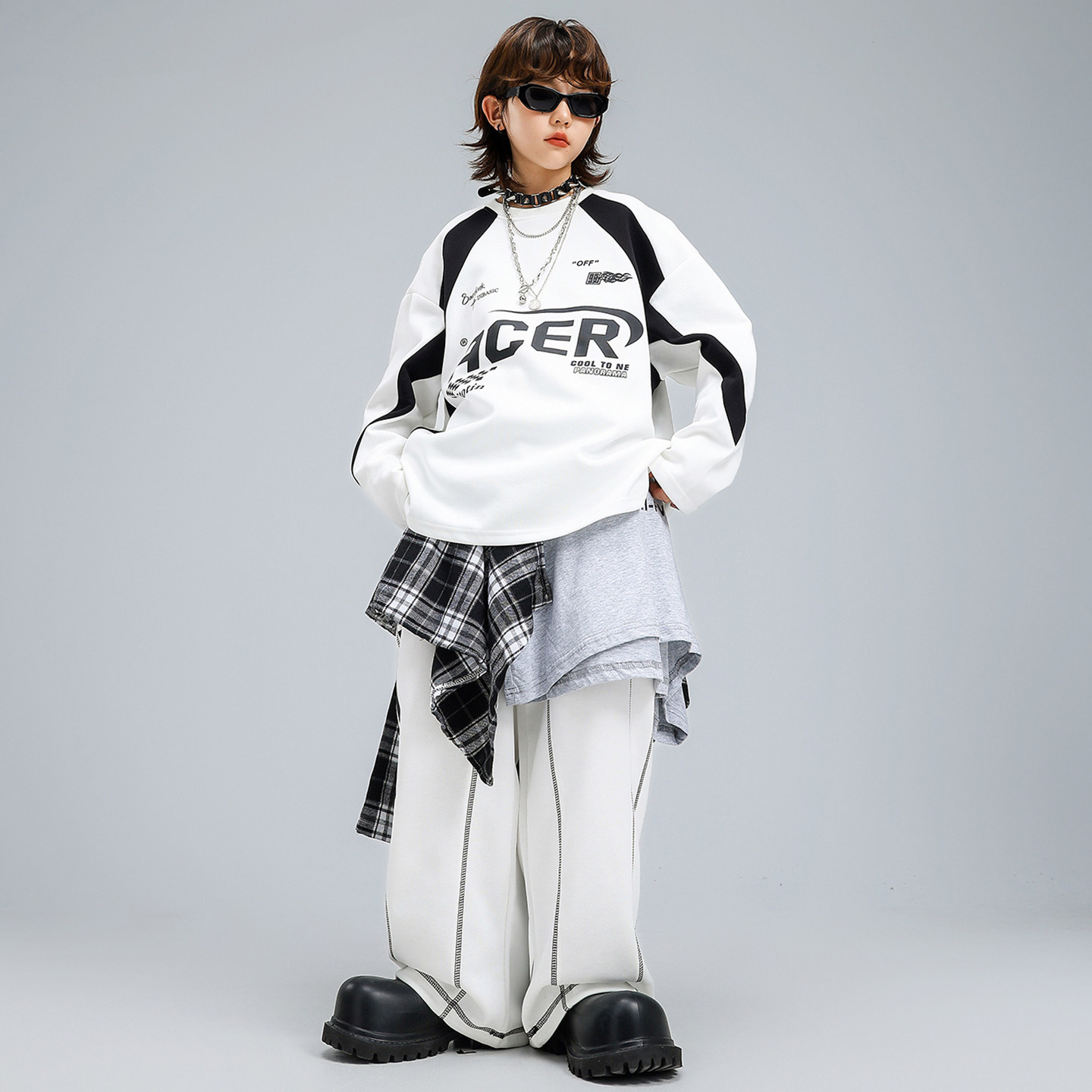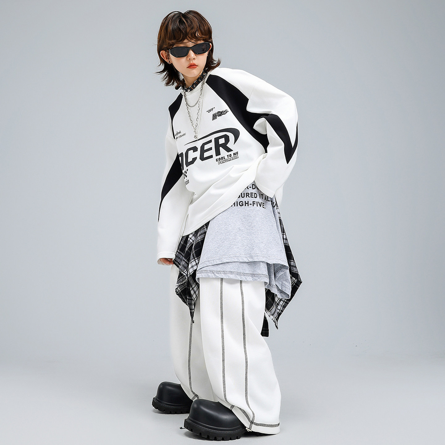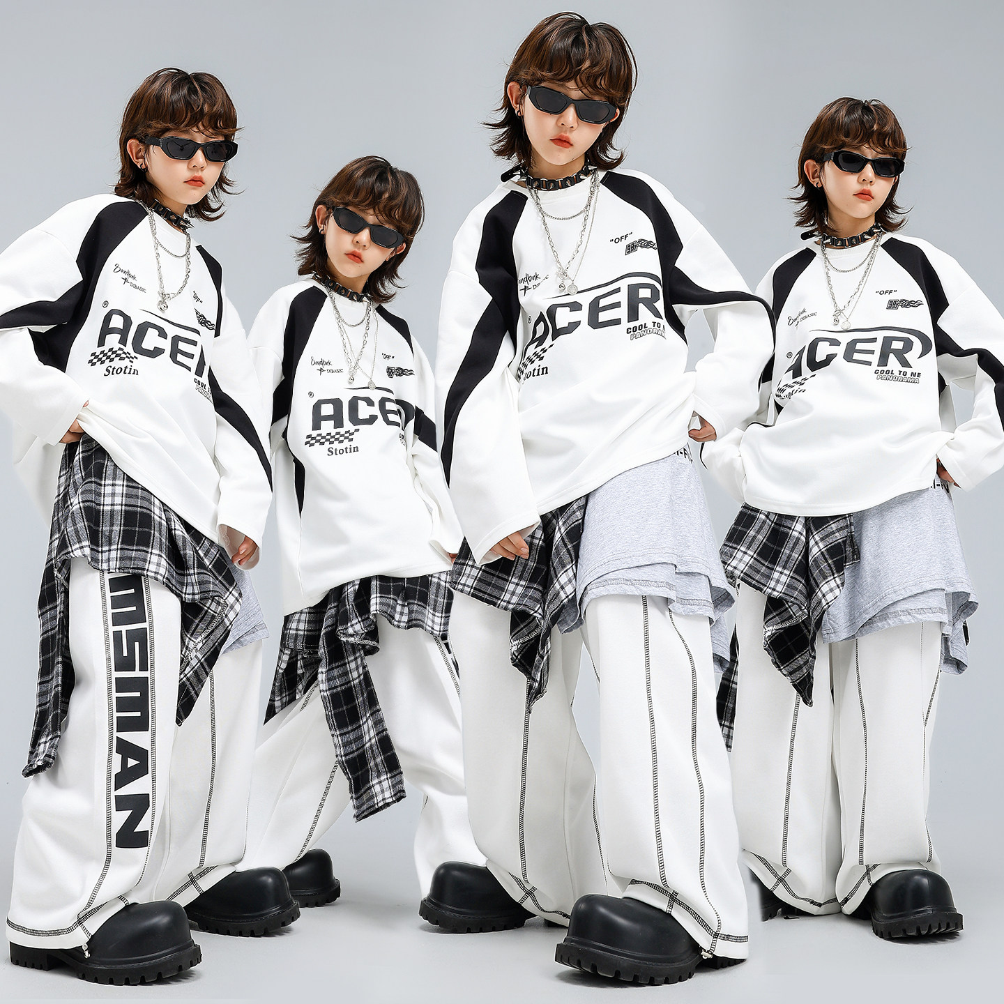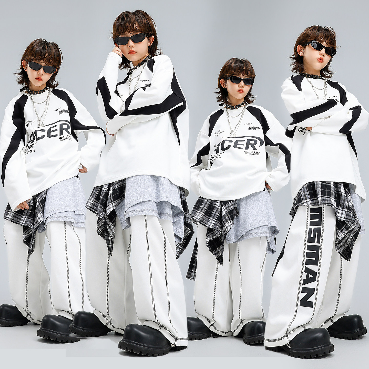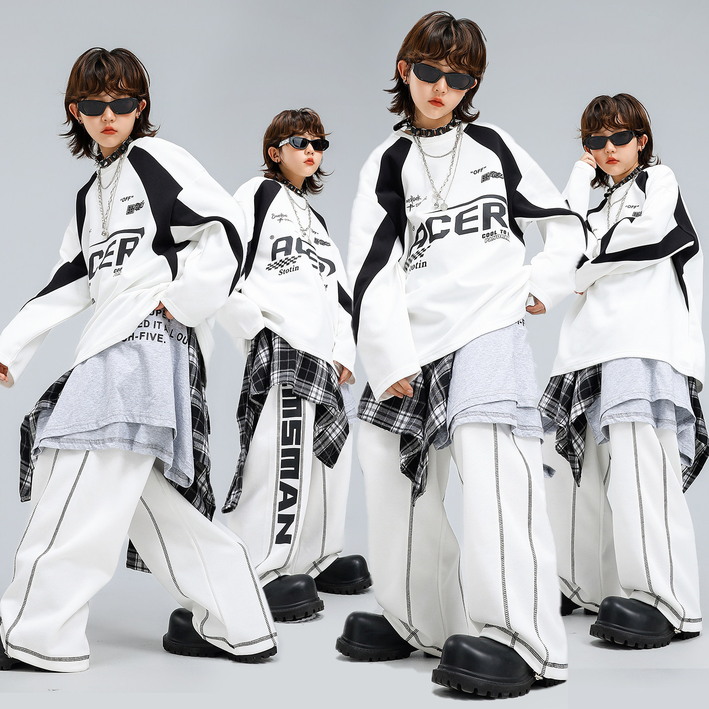 📚 街舞儿童白色炸街潮服男童hiphop帅气嘻哈架子鼓演出服套装表演服