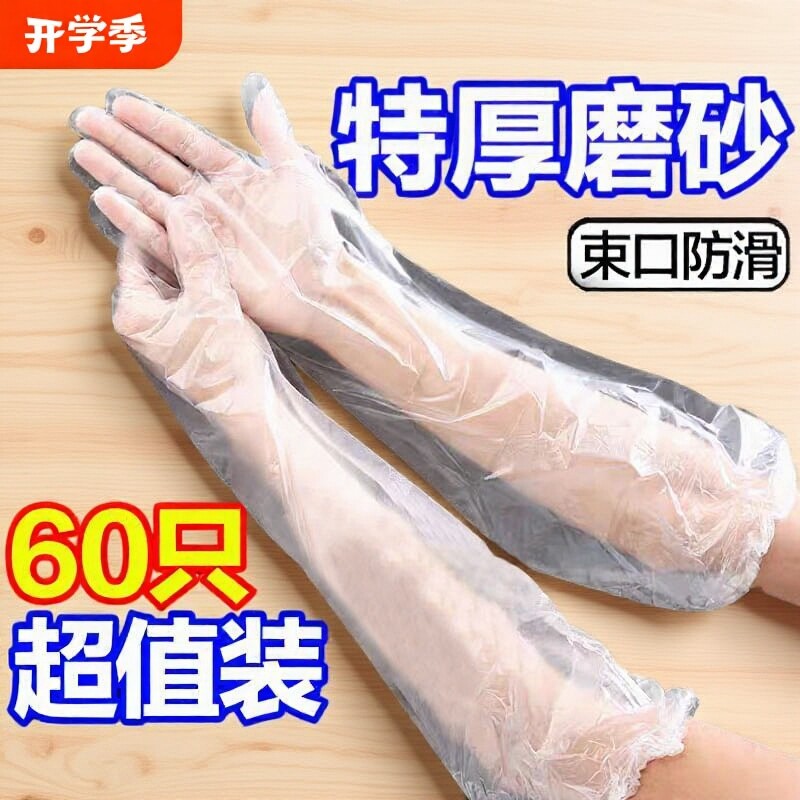 📚 一次性多功能护臂长手套PE食品用加长加厚防磨长袖手套防滑松紧口