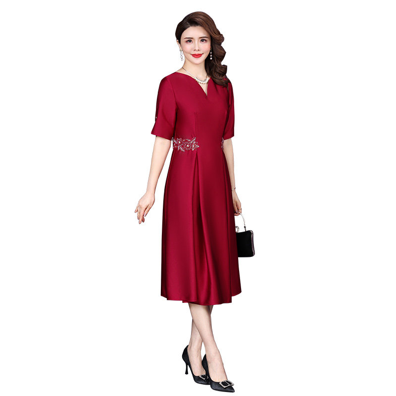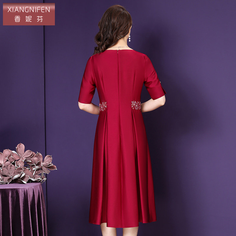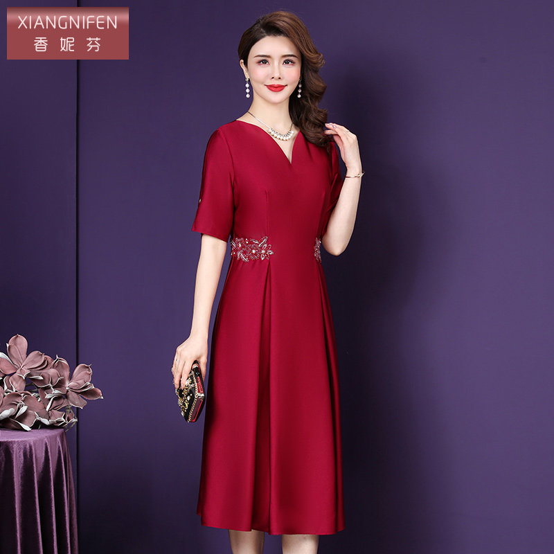 📚 香妮芬红色气质高贵礼服女2025年秋季新款妈妈收腰晚会婚宴连衣裙