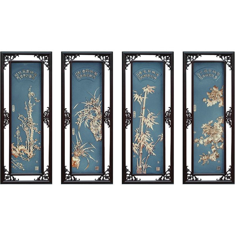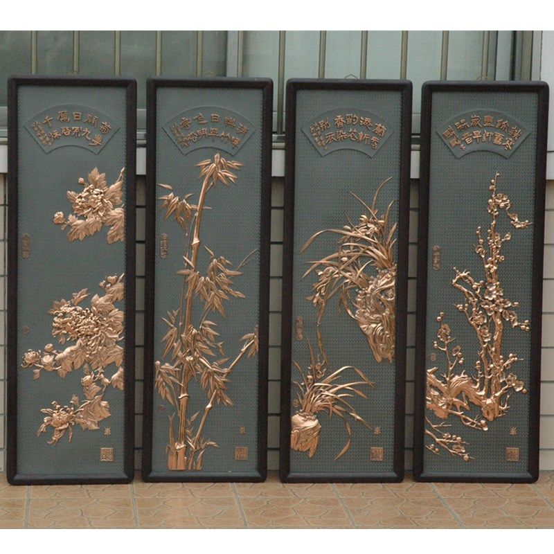 📚 紫铜浮雕梅兰竹菊四条屏茶室茶馆装饰画乔迁开业高档礼品实用大气