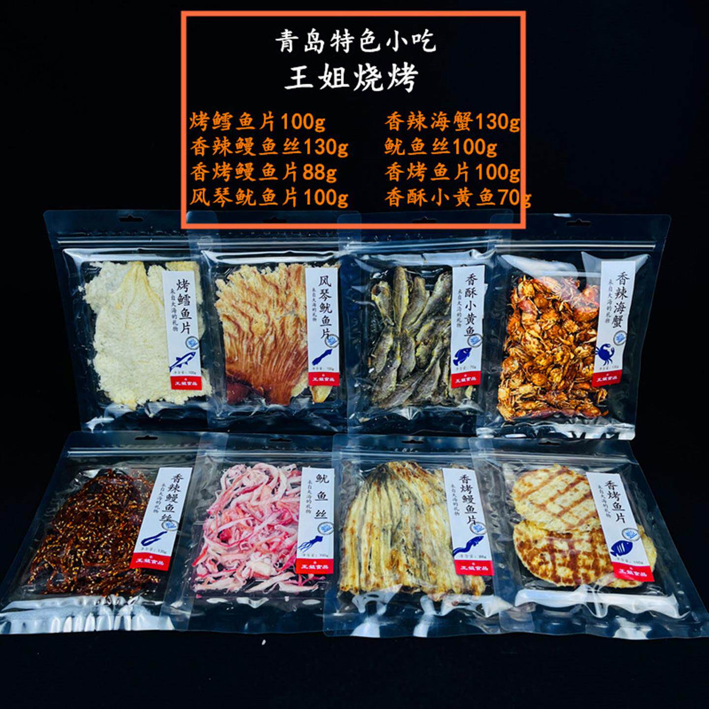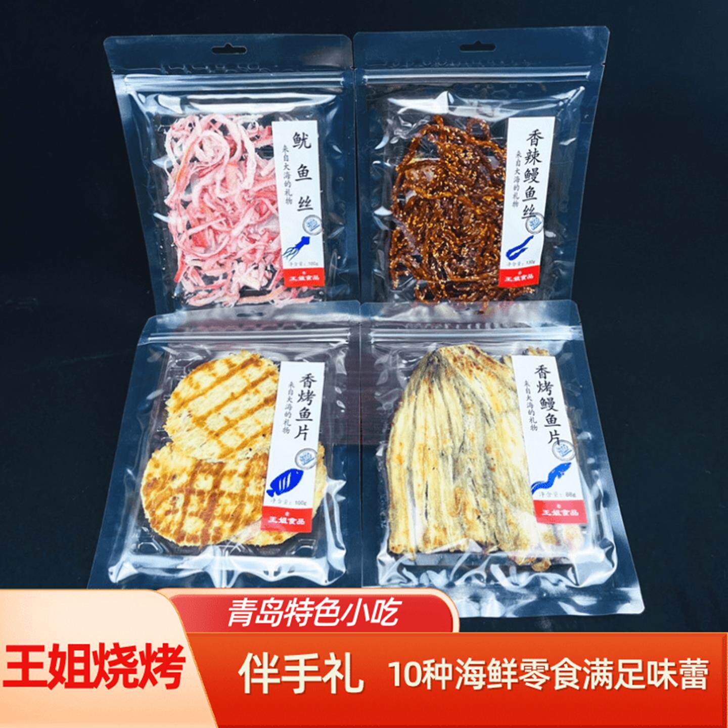 📚 王姐烧烤特色小吃青岛特产海鲜零食礼盒鱿鱼丝鳗鱼丝烤鱼片鳗鱼片
