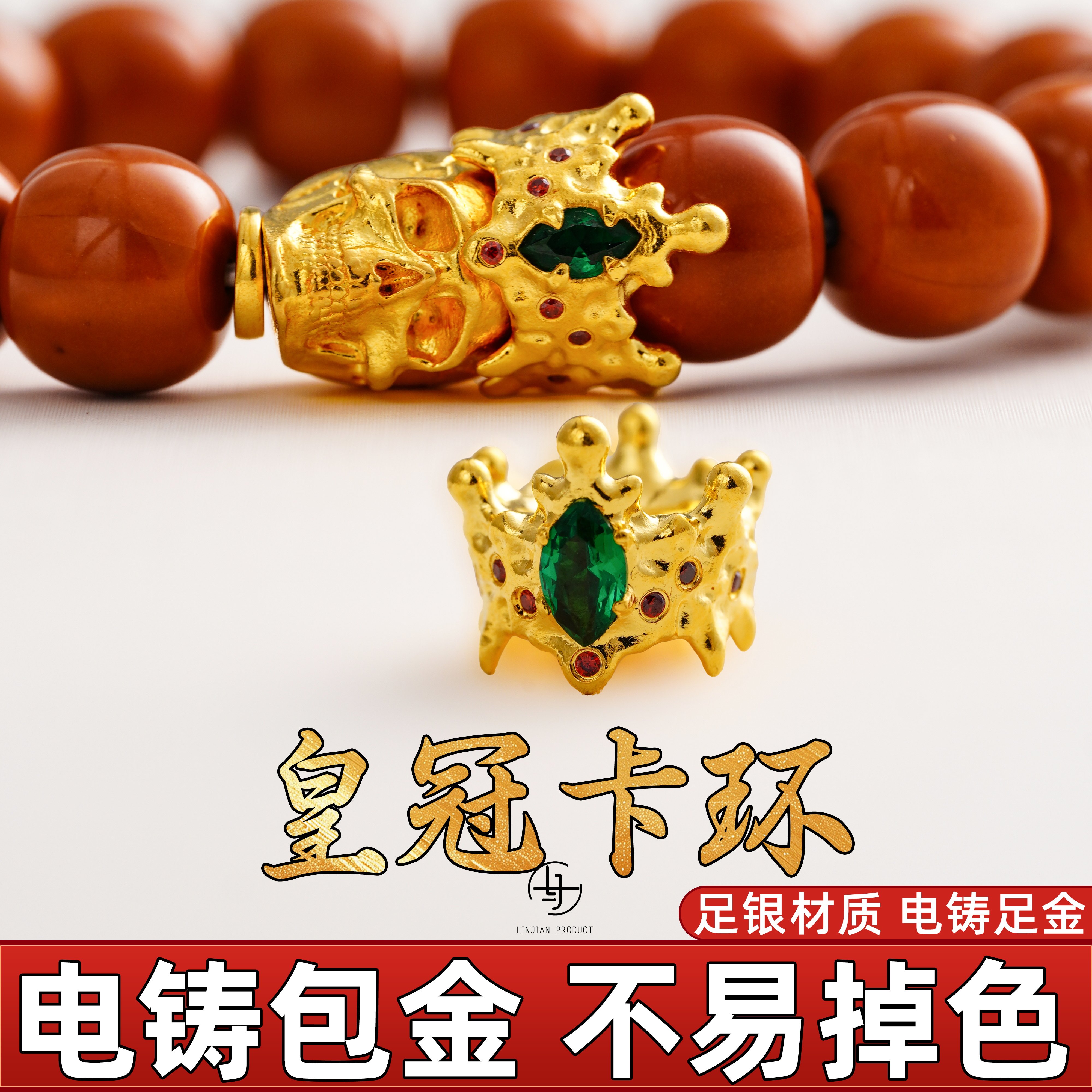 📚 99纯银电铸包金皇冠卡环手串diy配件隔片文玩配饰金包银 非足金