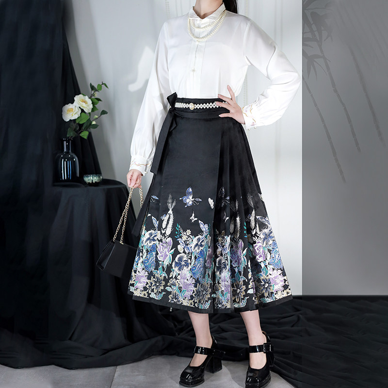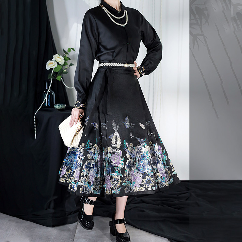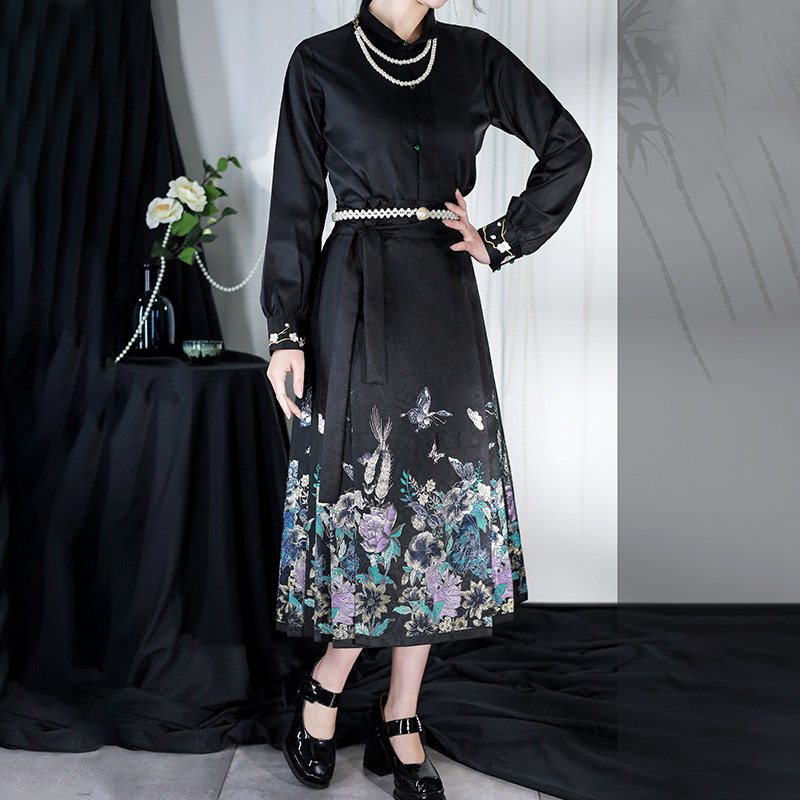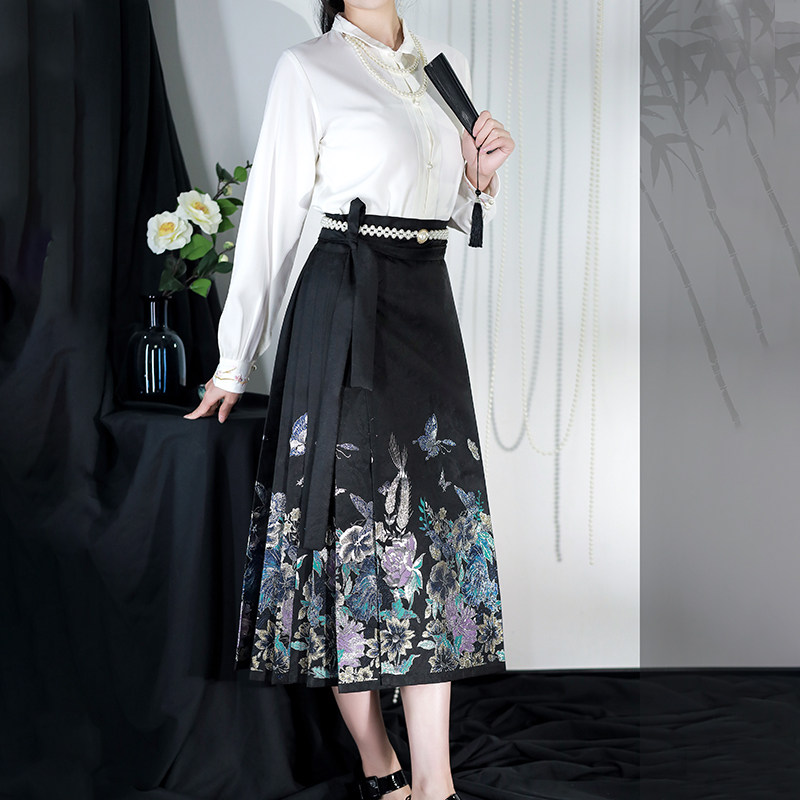 📚 慕夏【步步生花】明制汉元素衬衣女八分黑色马面裙日常改良汉服夏