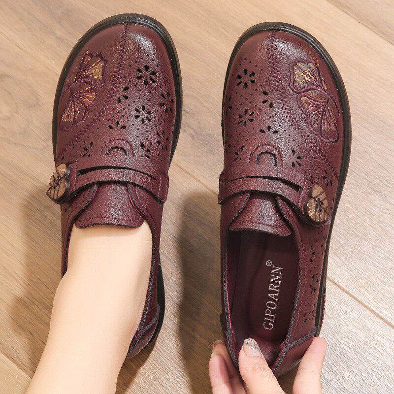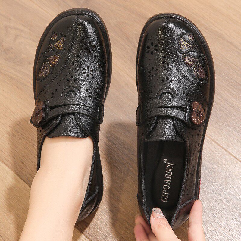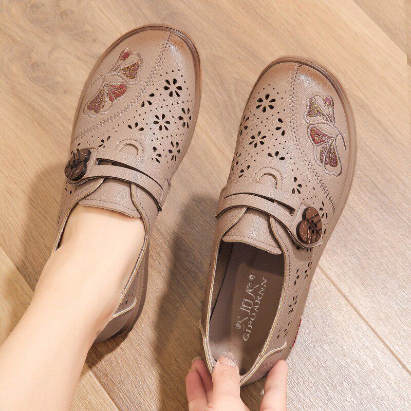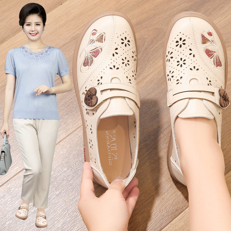 📚 妈妈鞋凉鞋2026新款真皮中老年妈妈鞋中老年人镂空洞洞皮鞋奶奶鞋