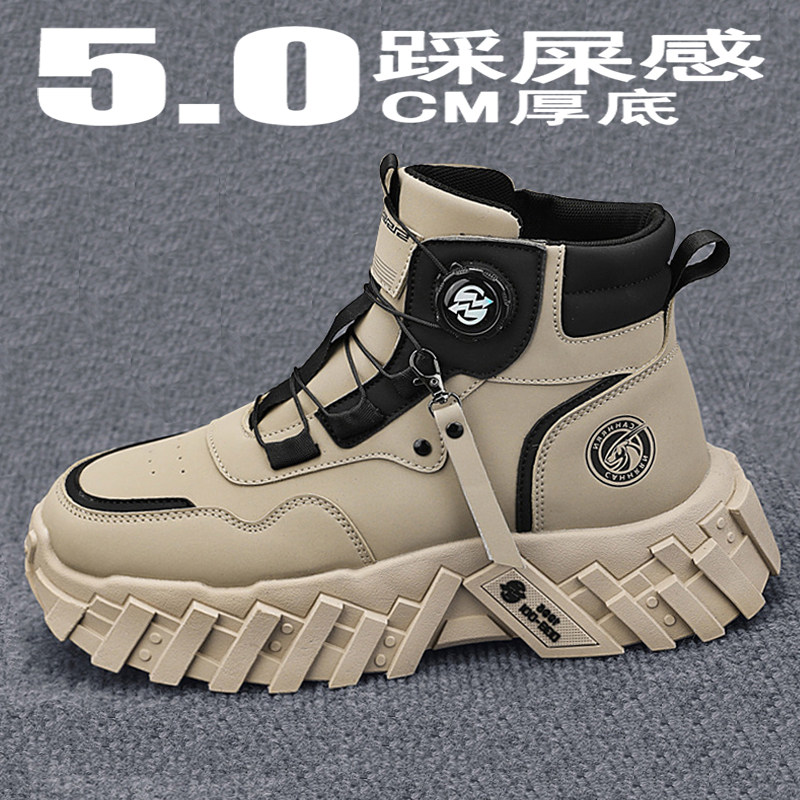 📚 大黄马丁靴男款2026新款潮防滑高帮鞋子旋转纽扣男士耐磨户外男鞋