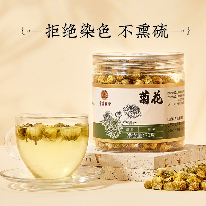 📚 【淘金币大额补】童涵春堂菊花茶浙江桐乡胎菊白菊清火养生茶30g