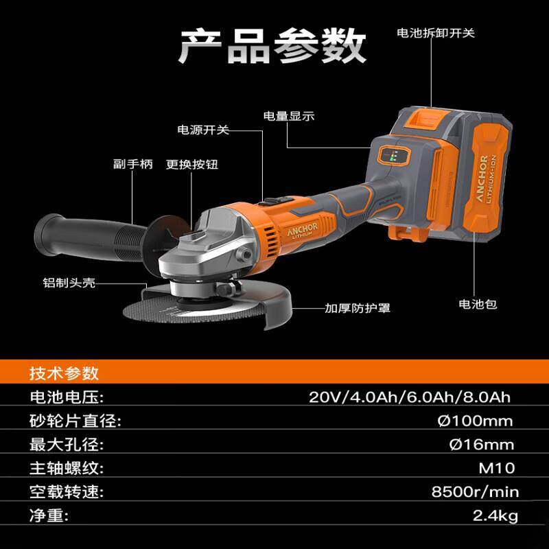 📚 铁锚DCA1无刷充电式角磨机 锂电直驱大功率手持切割机角向抛光机