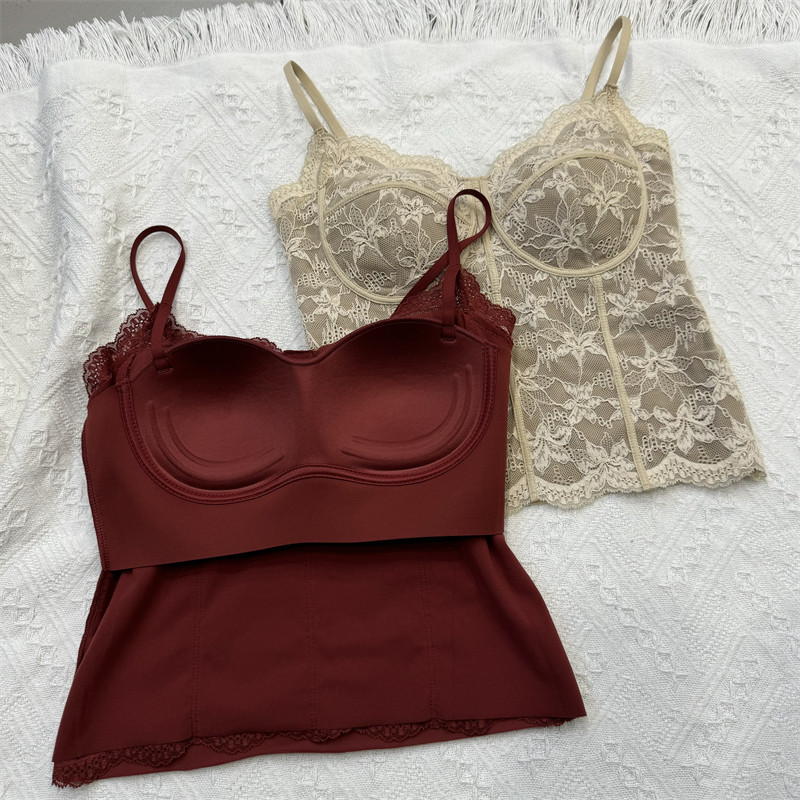 📚 MYL6100网红性感雷丝美背吊带一体杯防走光洋气百搭磨绒打底背心